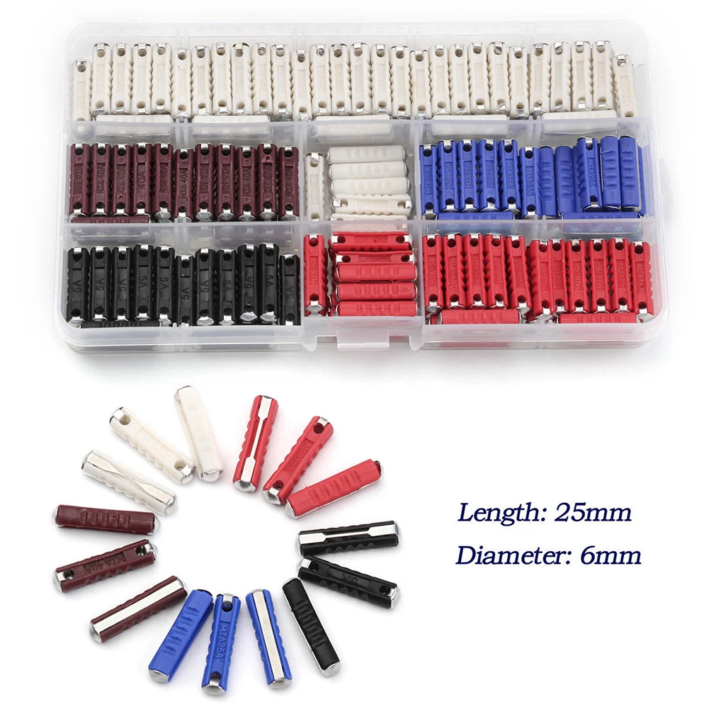 200 шт., автомобильный предохранитель в ассортименте, тип торпеды, Европейский автомобильный предохранитель 5A 8A 16A 25A 40A с чехлом для хранения, автомобильные аксессуары, поддержка CSV