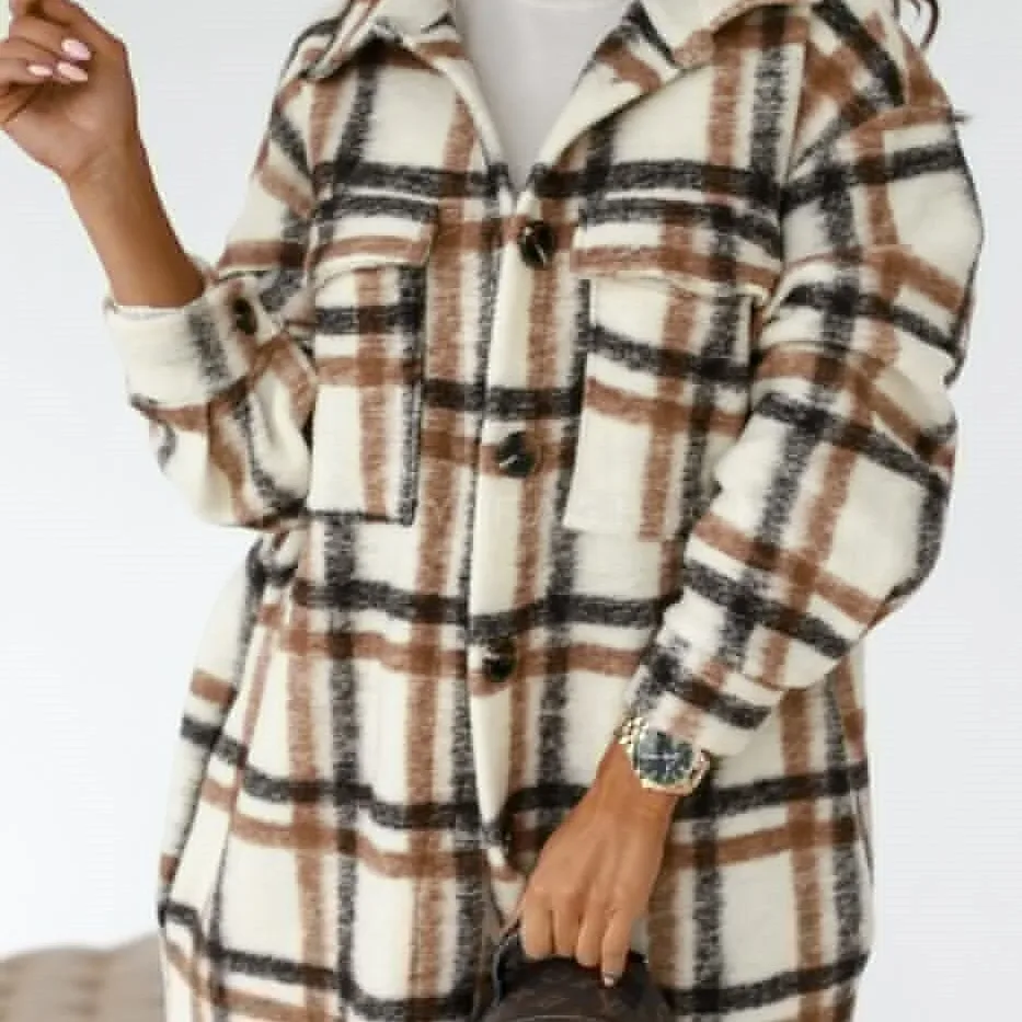 Женская тонкая клетчатая куртка, длинное клетчатое пальто большого ...