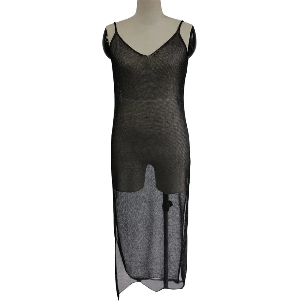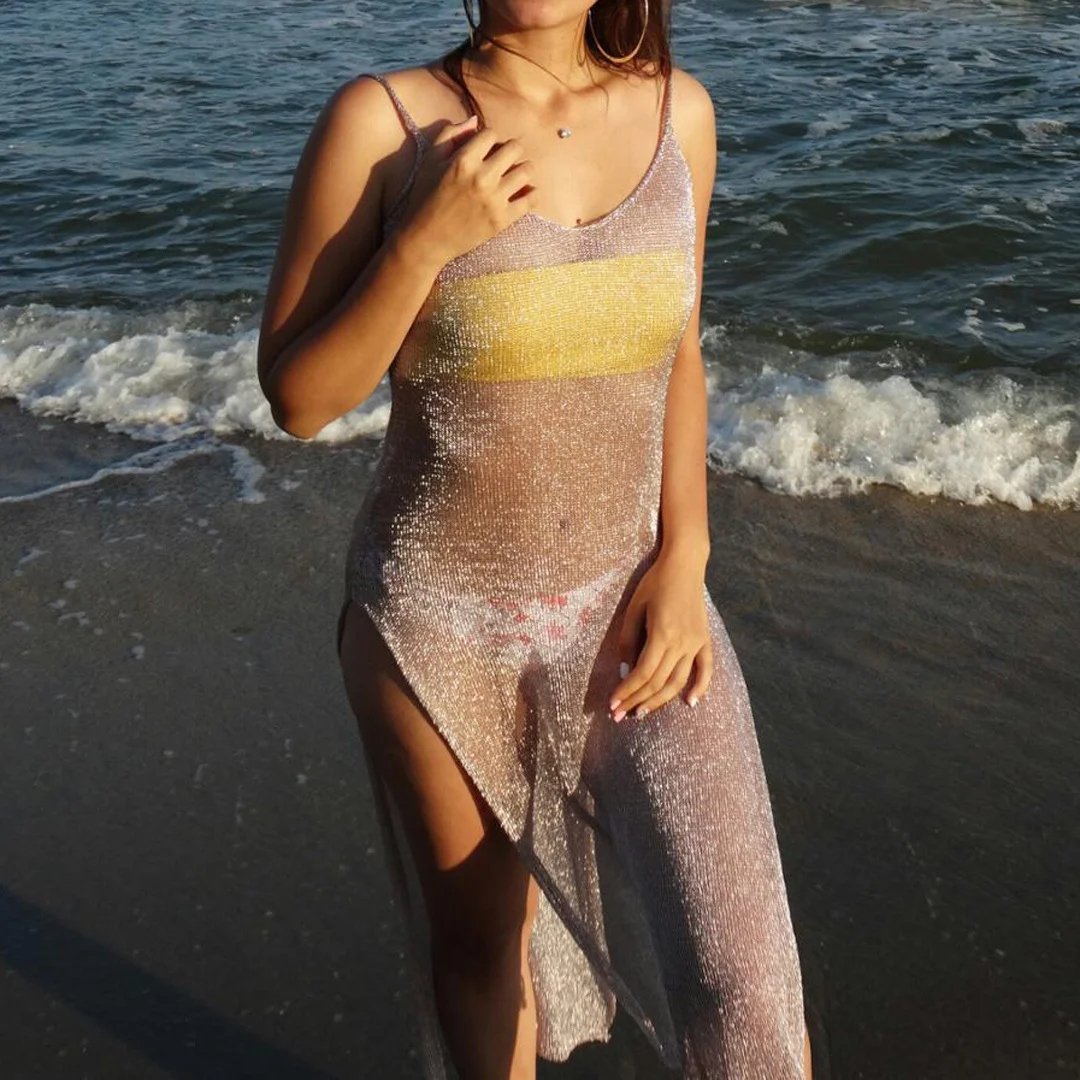 Сексуальная прозрачная сетчатая трикотажная туника с блестками, Пля...