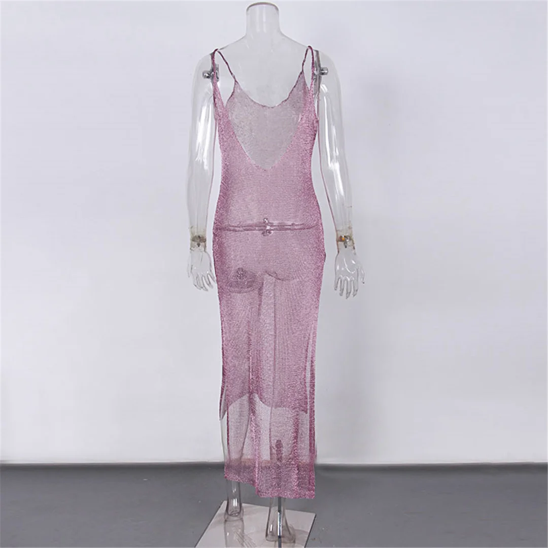 Пикантная прозрачная сетчатая вязаная блестящая Туника Пляжная накидка длинное пляжное платье Пляжная одежда женский халат