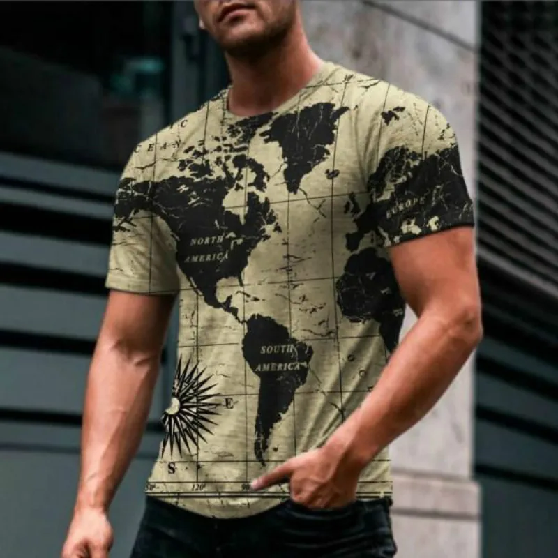 Футболка мужская с принтом карты и круглым вырезом, Повседневная Свободная модная универсальная рубашка с короткими рукавами в городском стиле, весна-лето 2021