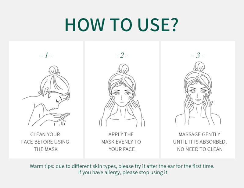 1.Afer ежедневный skincar, нанесите на fae или шею, Стирайте с rwarm водой в следующий мороз.2. Используйте 2-3 раза в неделю3. Нанесите, за 20 минут до макияжа, сделайте макияж более подходящим