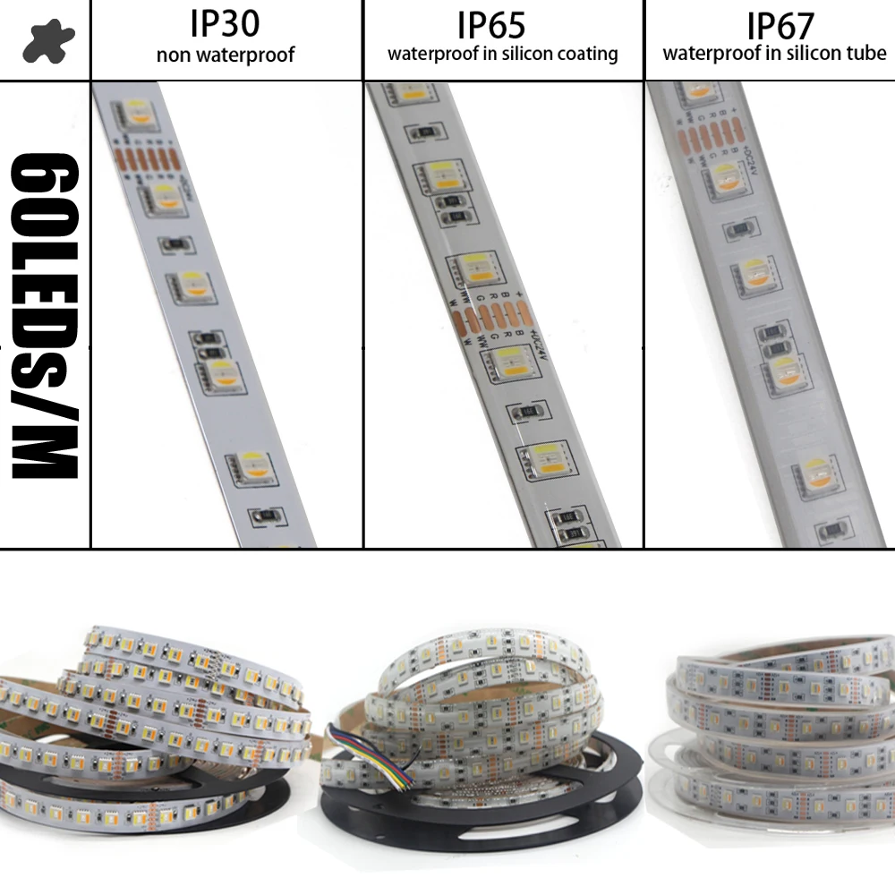 Гибкая светодиодная лента 12 мм PCB 5 м 5 в 1 RGB + CCT 5050 60 светодиодовм 96 светодиодовм водонепроницаемая светодиодная лента CW + RGB + WW RGBW RGB + WW 12 в 24 в