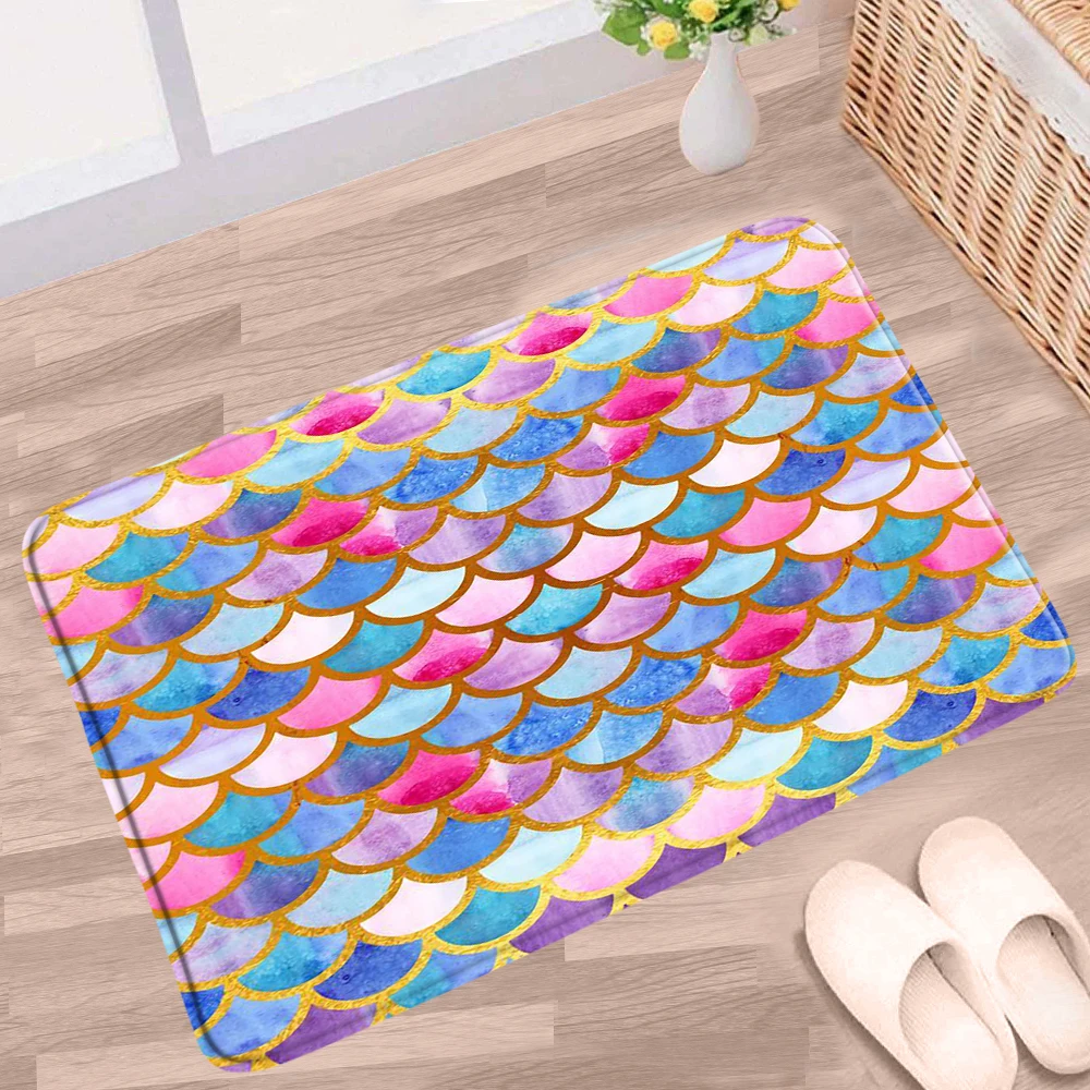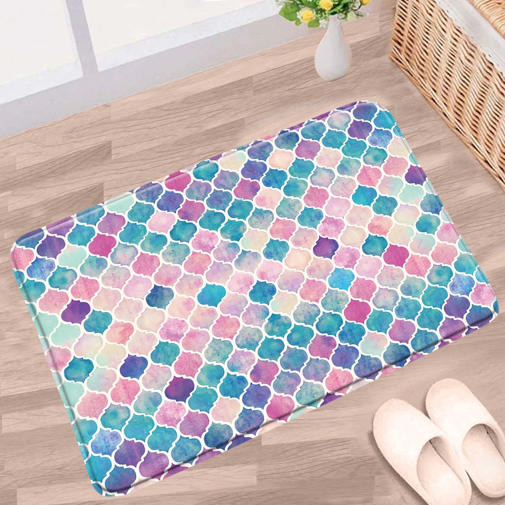 Коврик для ванной комнаты, с изображением рыбьей чешуи, с геометрическим узором, нескользящий, из фланели, для ванны и кухни, коврик для прихожей