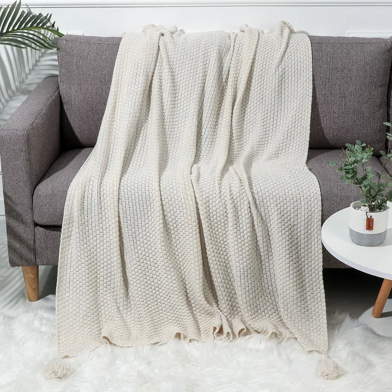 Вязаное одеяло в нордическом стиле для дивана, офисное мягкое вязаное шерстяное одеяло для отдыха с воздушным охлаждением и кисточками