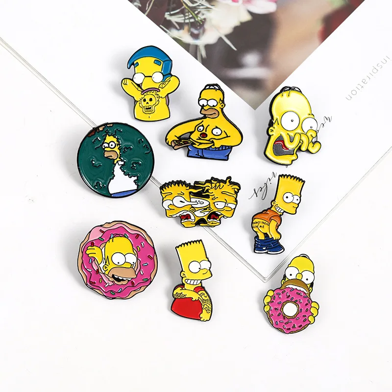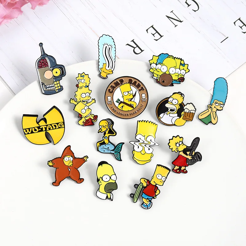 Эмалированные Значки для семейной жизни, значки, Лиза, Гомер, Джей, Мардж, Керк, мультяшный персонаж, аксессуары для детей, друзей, сумка для одежды