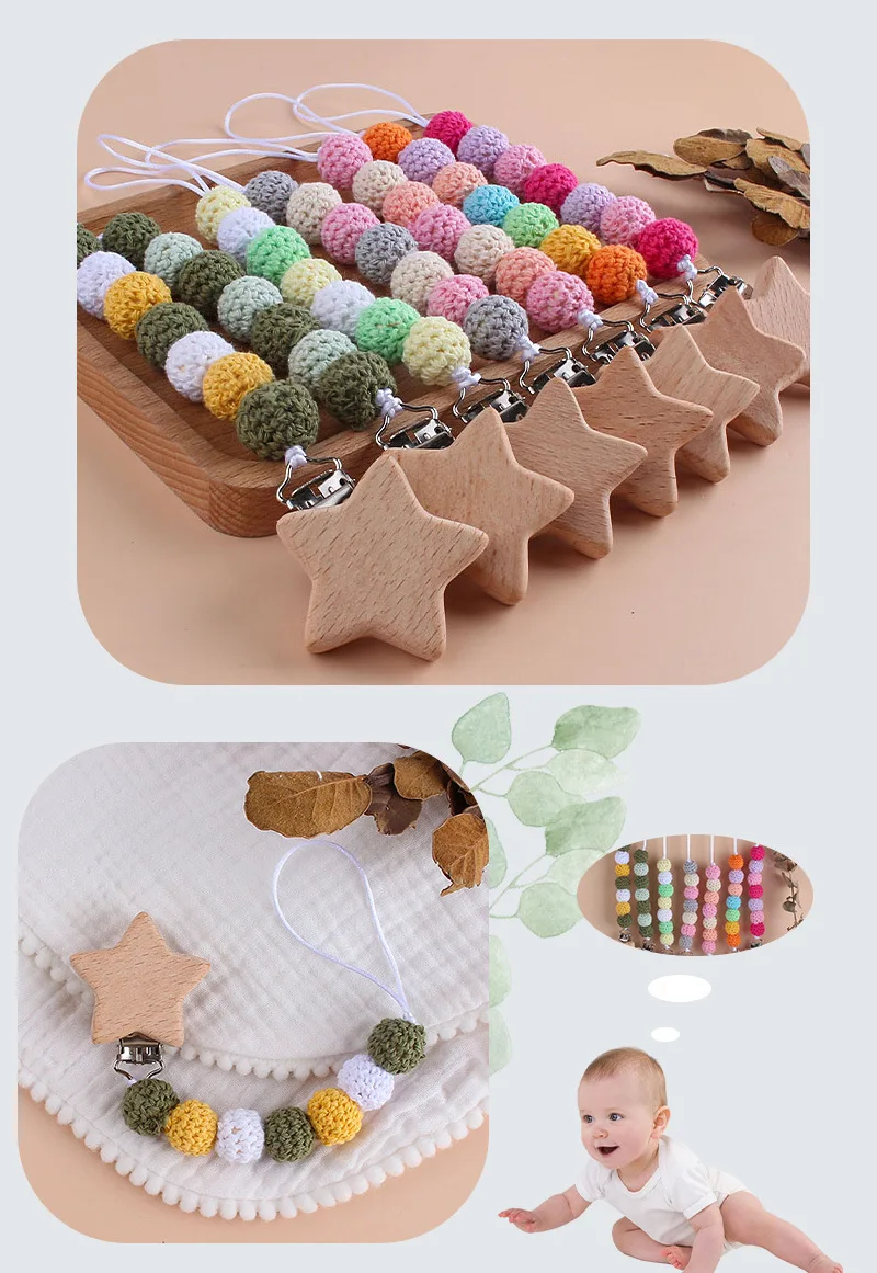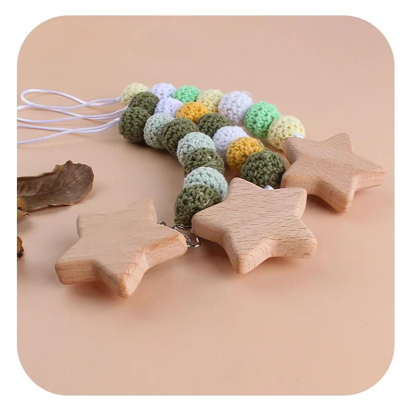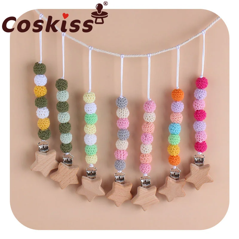 Coskiss детская цепочка для соски буковая пятиконечная звезда зажим радужные вязаные бусины игрушки Прорезыватель для соски цепочка держатель для ребенка