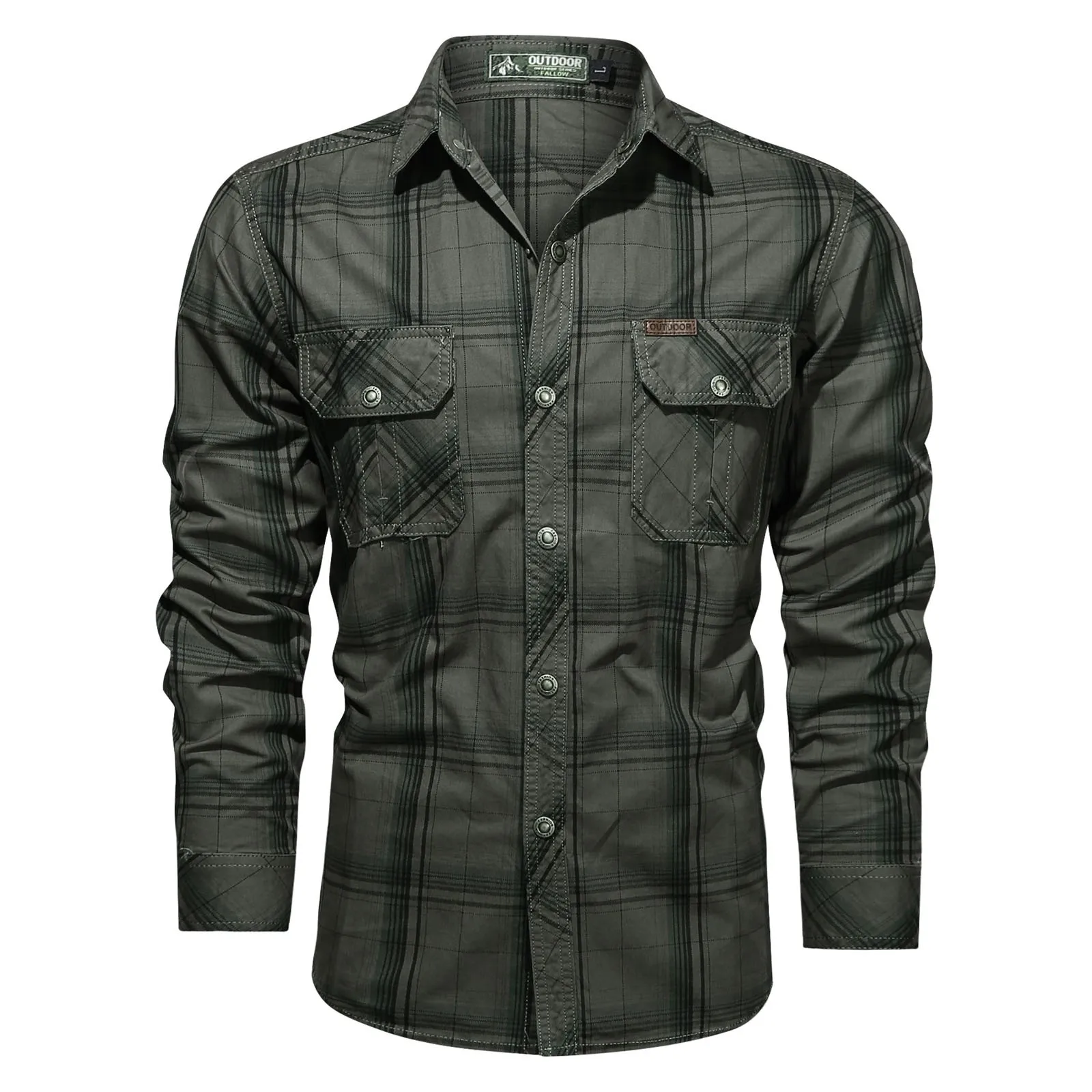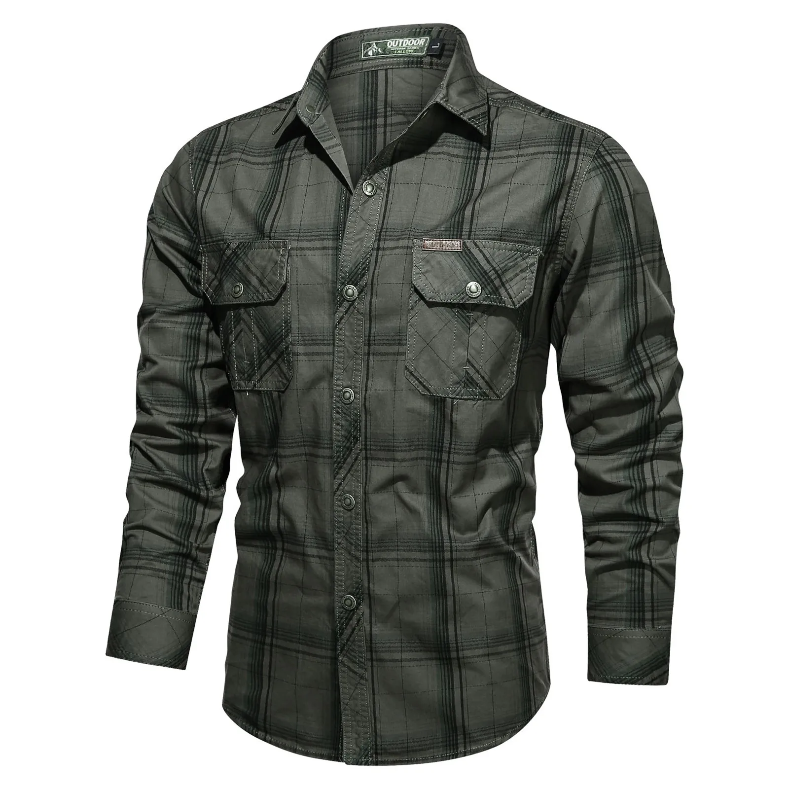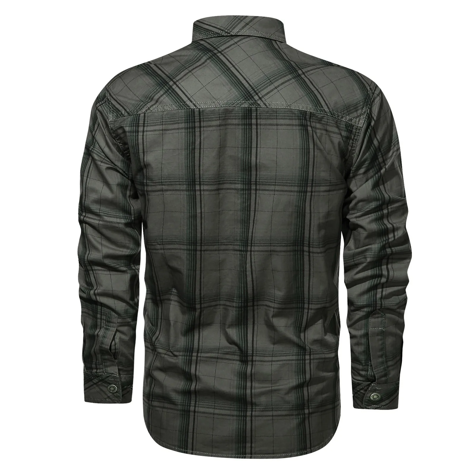 Рубашка мужская клетчатая с длинным рукавом, модная однобортная рубашка с отложным воротником, на пуговицах, в стиле милитари