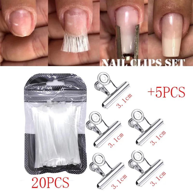 20 шт. нетканый шелк для ногтей + 5 шт. зажим