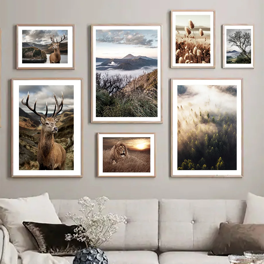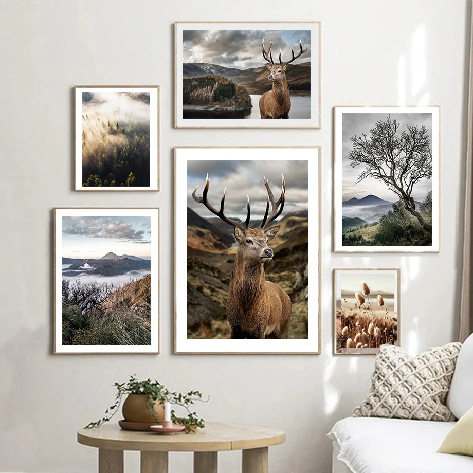 Настенная картина с изображением зимней Снежной Горы оленя лисы на ...
