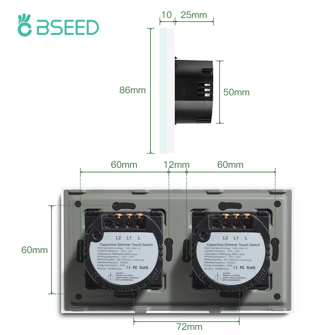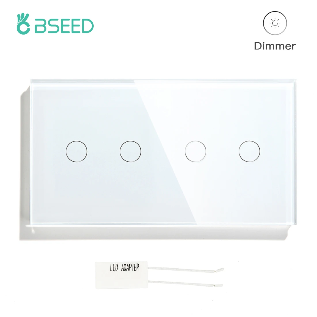 Двухканальный диммер BSEED, сенсорный переключатель света, Настенные переключатели с кристаллической панелью, сенсорный датчик, Диммируемый светодиодный светильник льник, переключатель европейского стандарта
