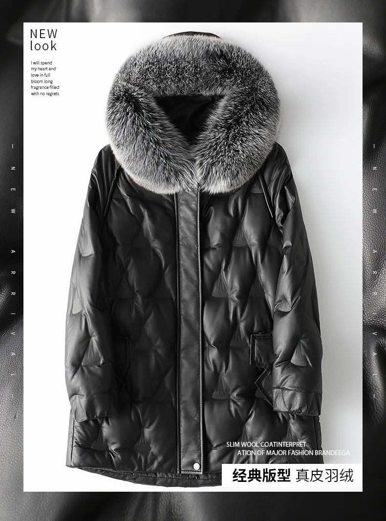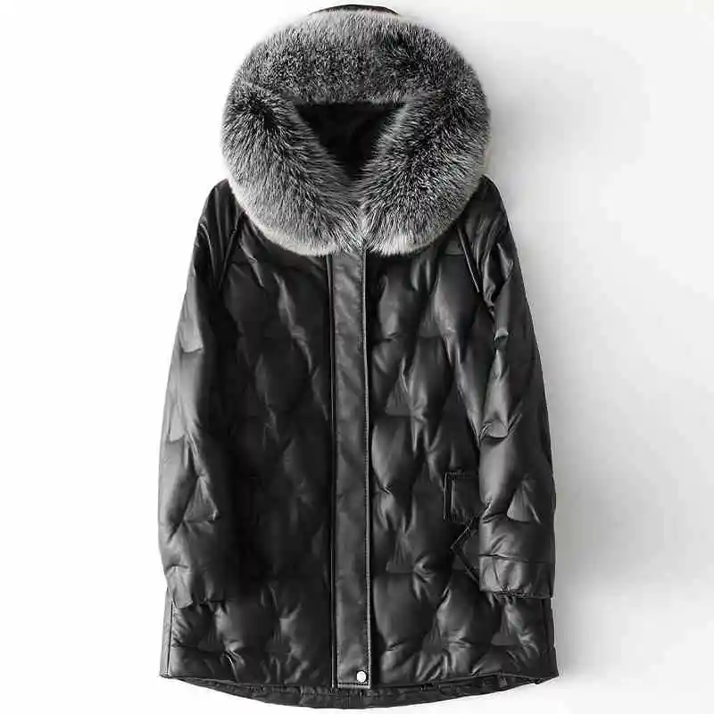 Женская куртка из натуральной овечьей кожи, куртка на утином пуху с капюшоном из натурального Лисьего меха, WY155, Прямая поставка