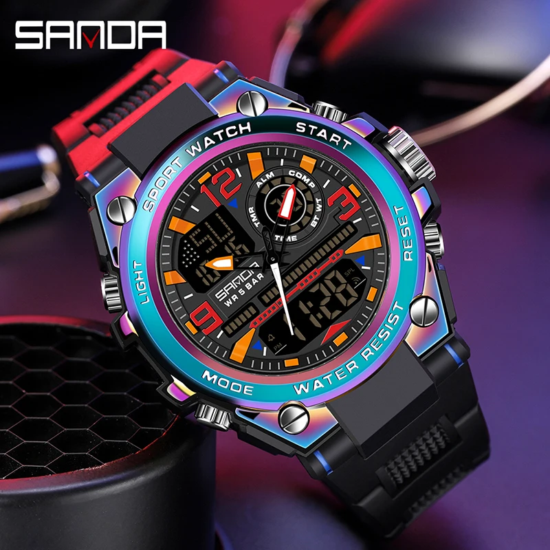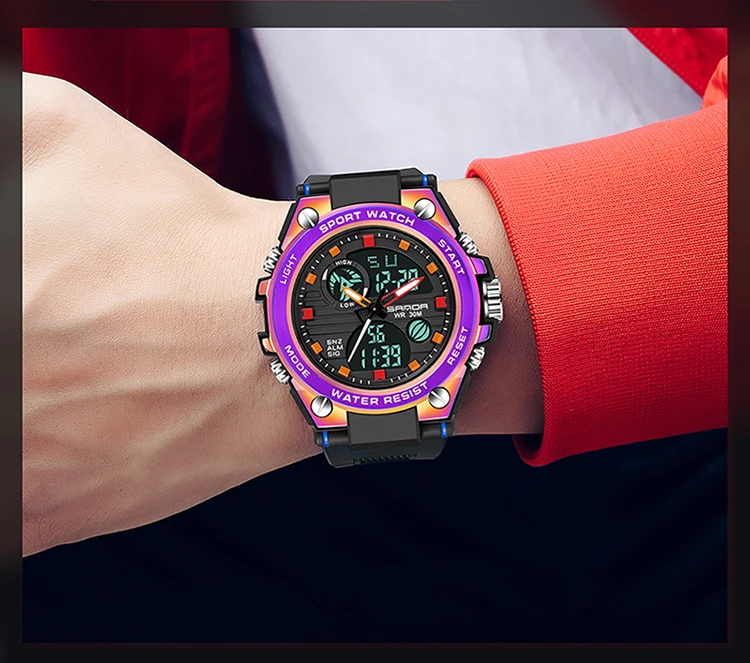 Часы SANDA мужские водонепроницаемые с двойным дисплеем, брендовые ...