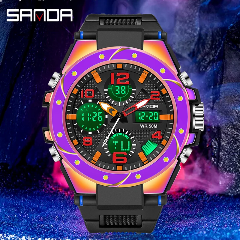 Мужские наручные часы SANDA, водонепроницаемые, с двойным дисплеем