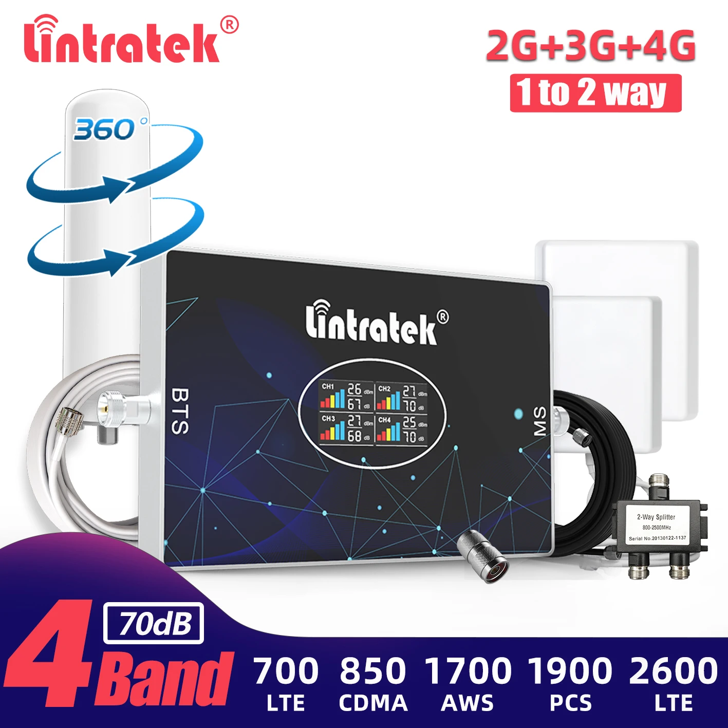 Усилитель сигнала Lintratek B28 B5 2G 3G 4G 700 850 1700 1900 2600 B7, ретранслятор сигнала CDMA LTE PCS, усилитель сотовой связи AWS, полный комплект