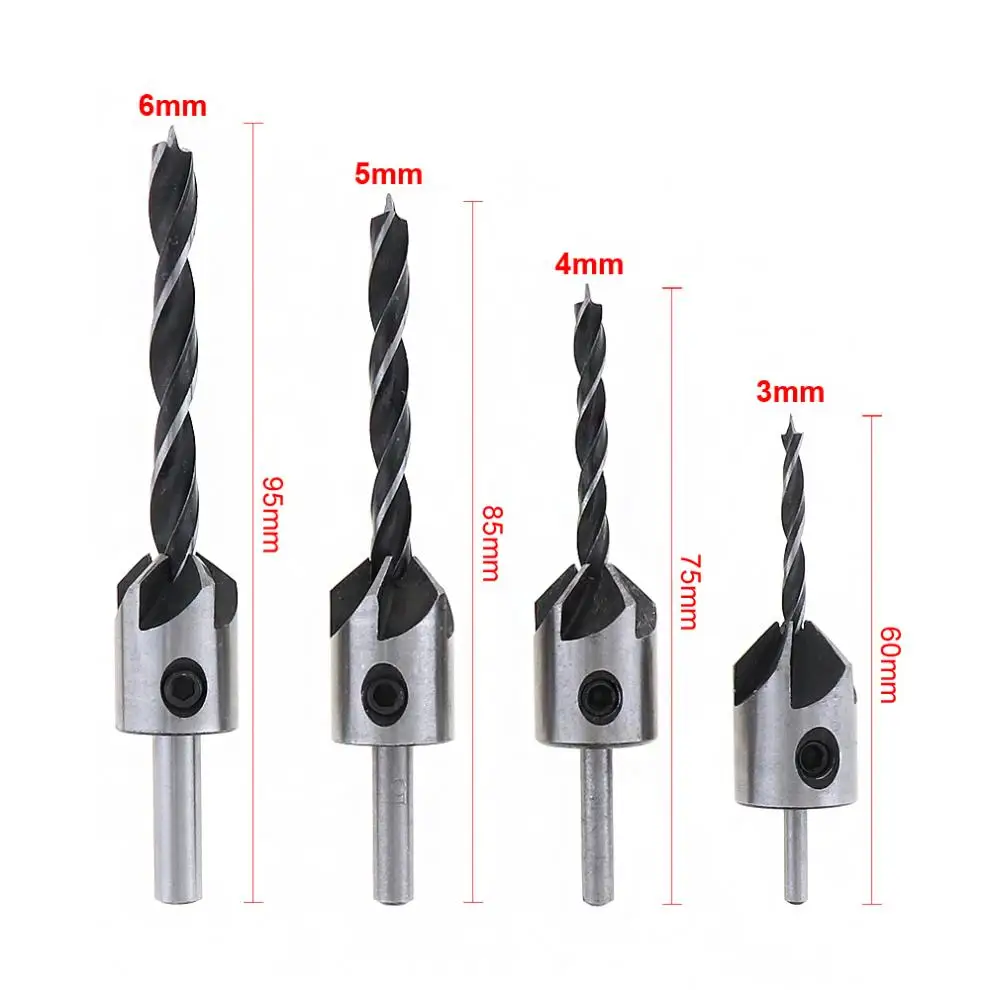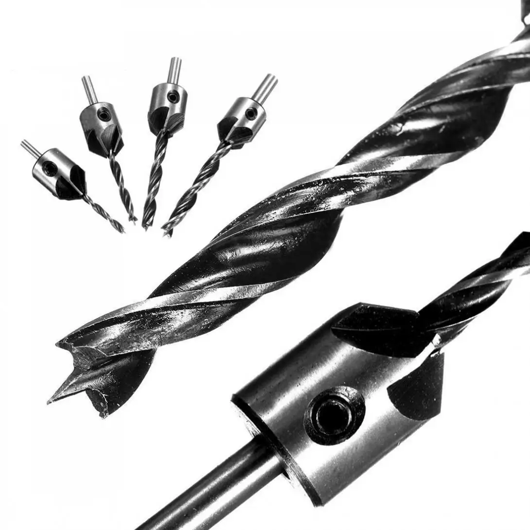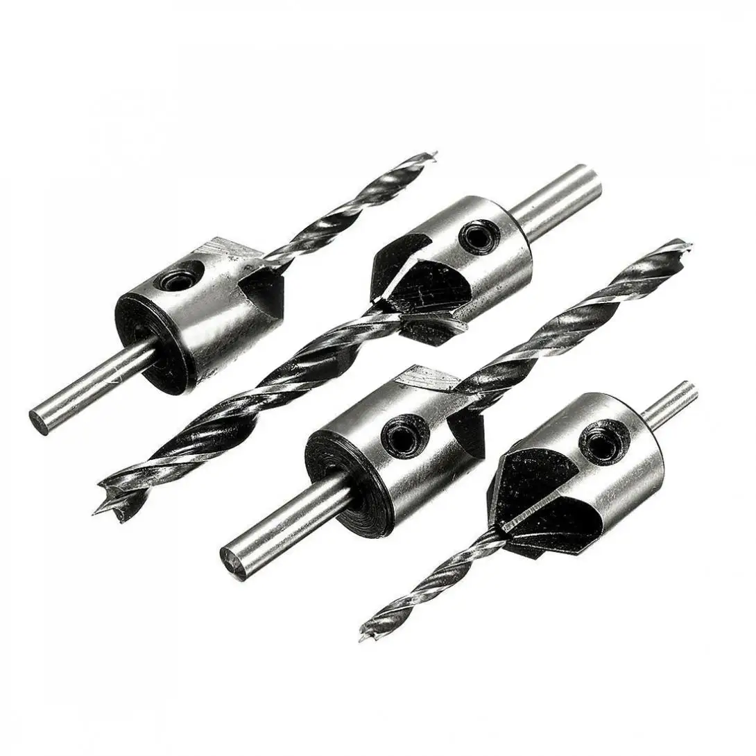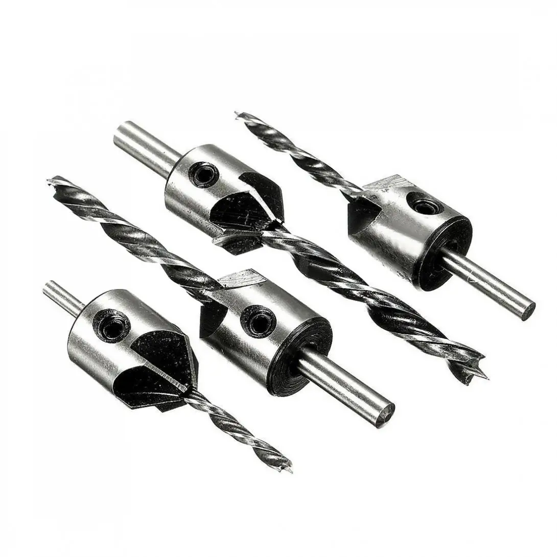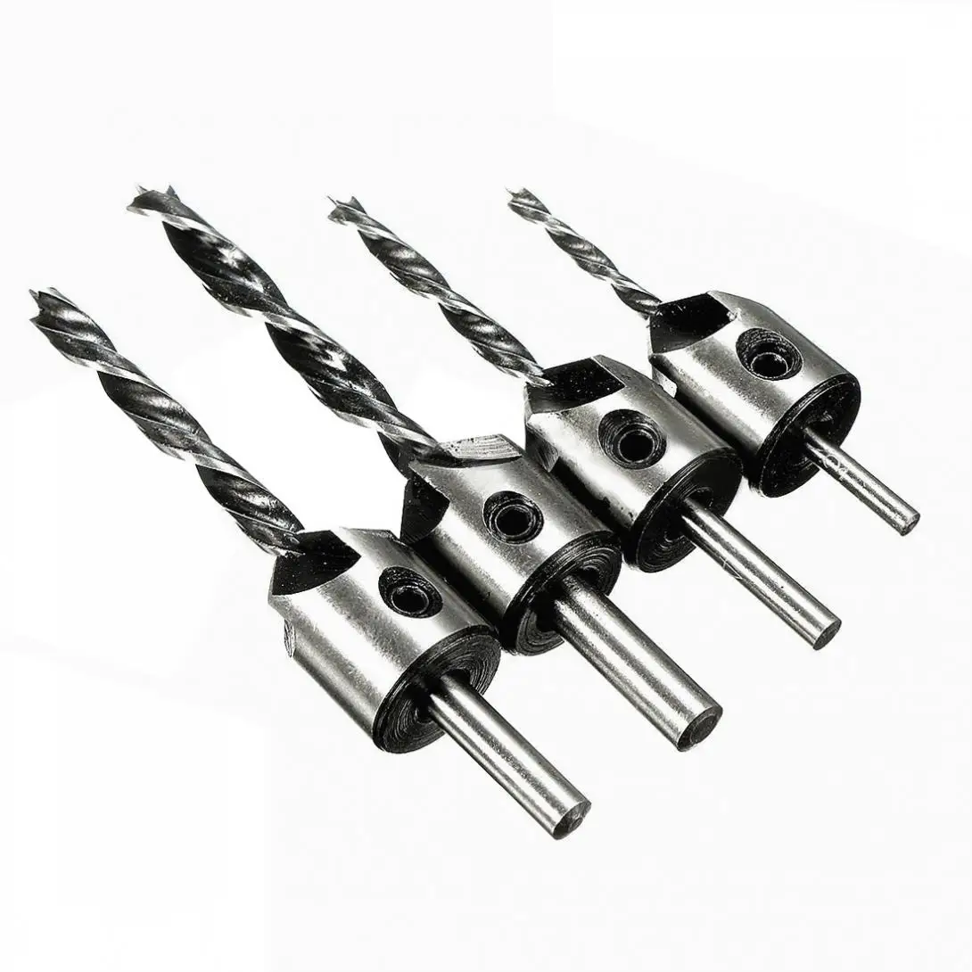 Набор сверл для зенковки, комплект из 4 насадок из быстрорежущей стали с 5 канавками, 3-6 мм, для деревообработки