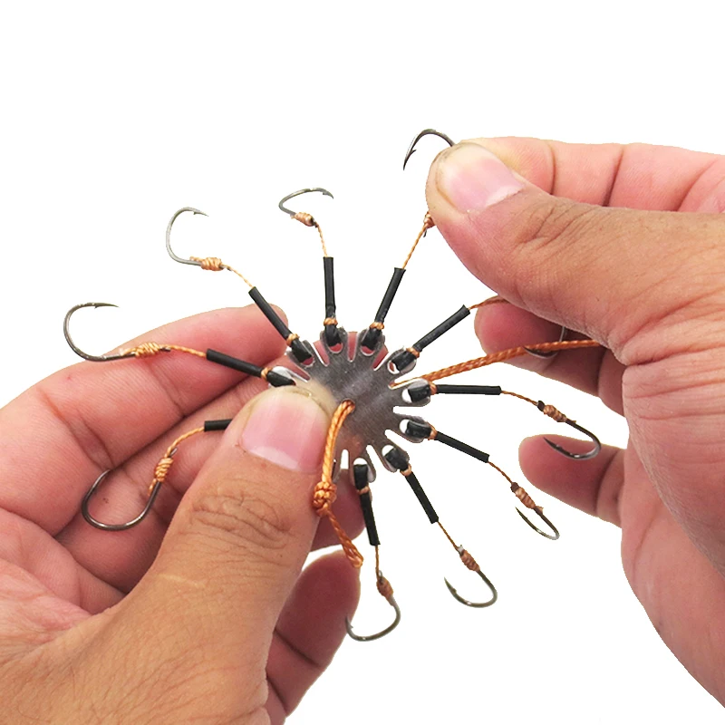 Особенности:1. Состоит из 12 острых крючков, увеличивающих скорость роста рыбы до крючка.2. Прекрасные рыболовные снасти для любителей рыбалки.3. Супер острый и прочный, он изготовлен из высококачественной углеродистой стали.4. Крючок завернут в резиновую пленку. Прочный и удобныйИнформация о продукте:Материал:Углеродистая стальТип:12 крючковНомер крючка:7 #9 #11 #13 #Категория:Взрывной крюкПосылка:2 шт./компл.Примечания:-Из-за светильник и экрана Цвет Товара может быть s светильник ly отличается из-за характеристик монитора компьютера.-Возможны незначительные отклонения в размерах из-за различных измерений вручную.