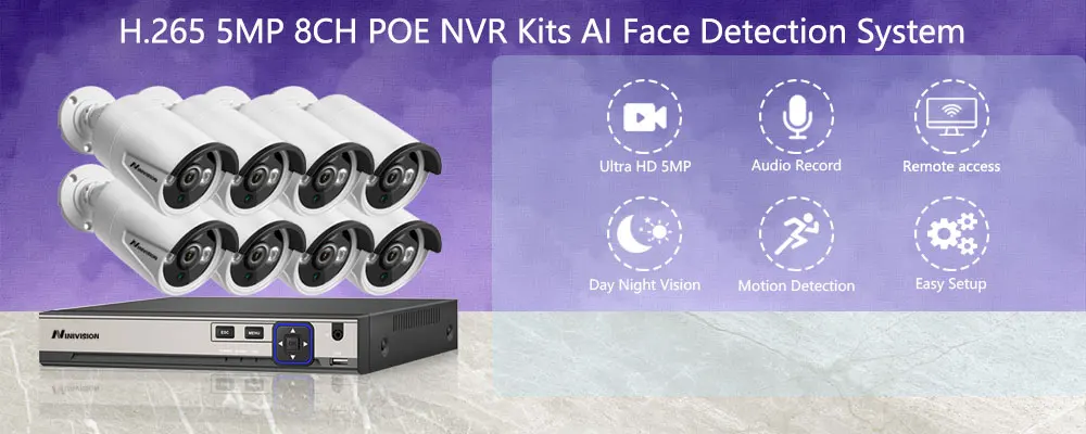 1. Ультра HD 4K дисплей высокой четкости, NVR может поддерживать 8 МП и 4K max, вы можете подключить 720p,1080p,3mp,4mp ,5mp, камеры 8mp & 4k с нашим POE NVR;2. Ультра HD 5MP POE ip-камера, металлический материал, IP66 водонепроницаемый, подходит для внутреннего и наружного использования, надежная Домашняя безопасность;3. Наш NVR поддерживает распознавание лиц, воспроизведение лиц, обеспечивает ультра высокое разрешение видео наблюдения, обеспечивая максимальную детализацию и четкость в наличии;4. Наш NVR и камеры поддерживают расширенное H.265 Сжатие видео, питание через Ethernet, подключи и работай, прост в использовании;5. Все камеры встроены в микрофон, поддерживают аудиозапись, поддерживают режим ночного видения Ultra HD;6. Поддержка обнаружения движения, оповещения по электронной почте, воспроизведения видео и многоязычности;7. Поддержка Android,Iphone,Ipad,PC,VMS,P2P view;8. Удаленный доступ в любом месте, в любое время;