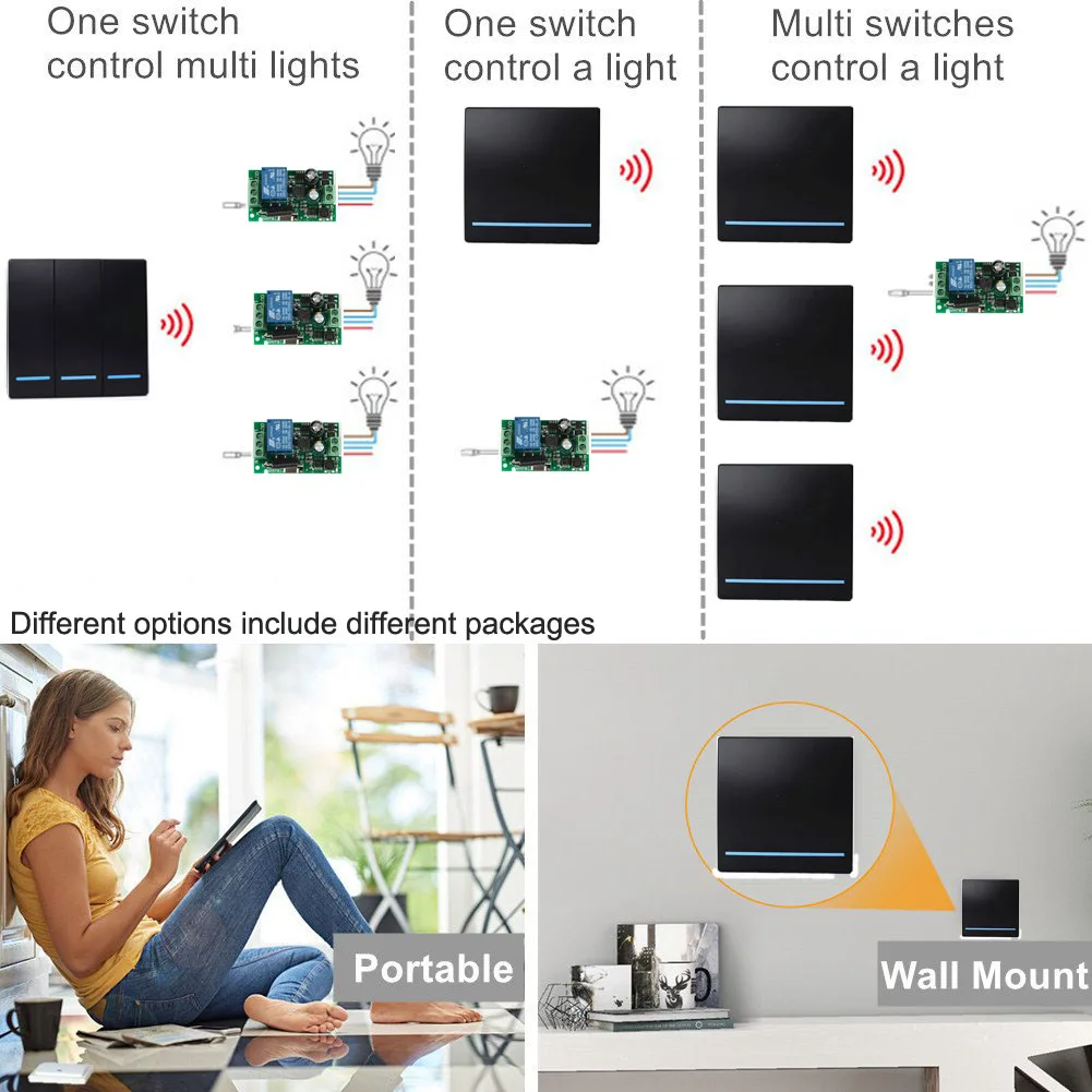 Универсальный беспроводной пульт дистанционного управления для умного дома, 433 МГц, 110 В переменного тока, 220 В, 1 канал, 10 А, релейный приемник и 86 передатчик настенной панели
