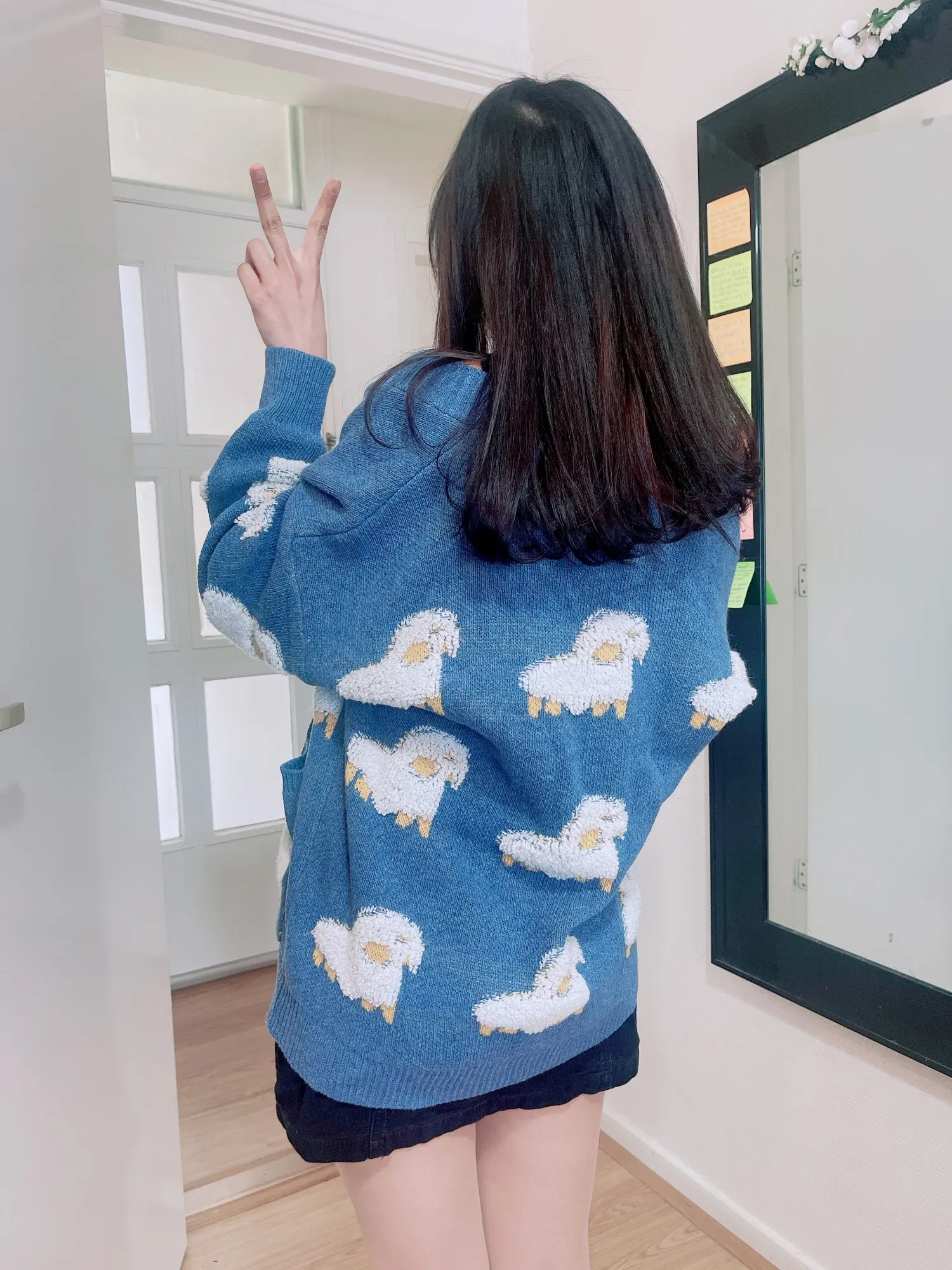 Женские вязаные свитера, милый кардиган с вышивкой овечьей шерсти, ...