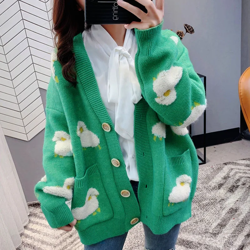 Плотный свитер Neploe, пальто, Женский вязаный кардиган с мультяшны...