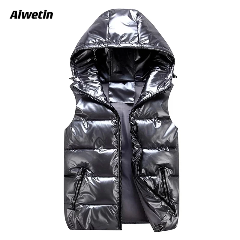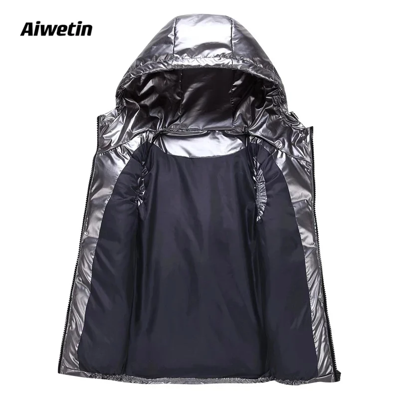 Женские зимние жилеты Aiwetin, новинка 2021, короткий яркий жилет с капюшоном, куртка с хлопковой подкладкой, женский зимний жилет без рукавов, жилет