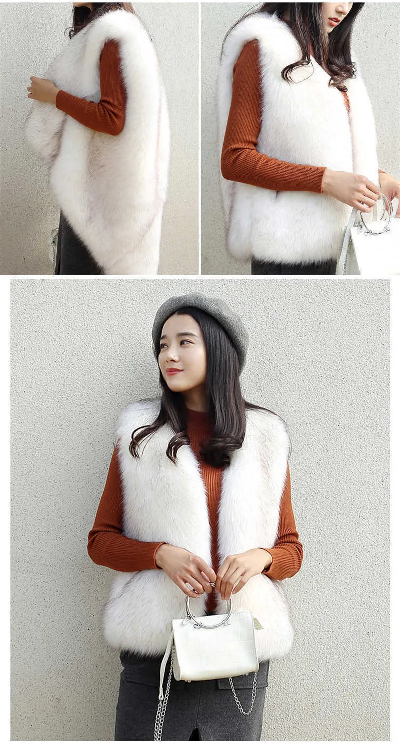 Женский жилет из лисьего меха, черный или белый теплый жилет без ру...