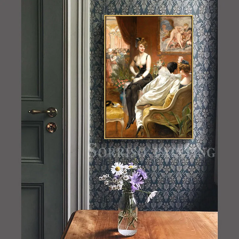 Европейская леди женщина девушка холст картина коридор стены фотооб...