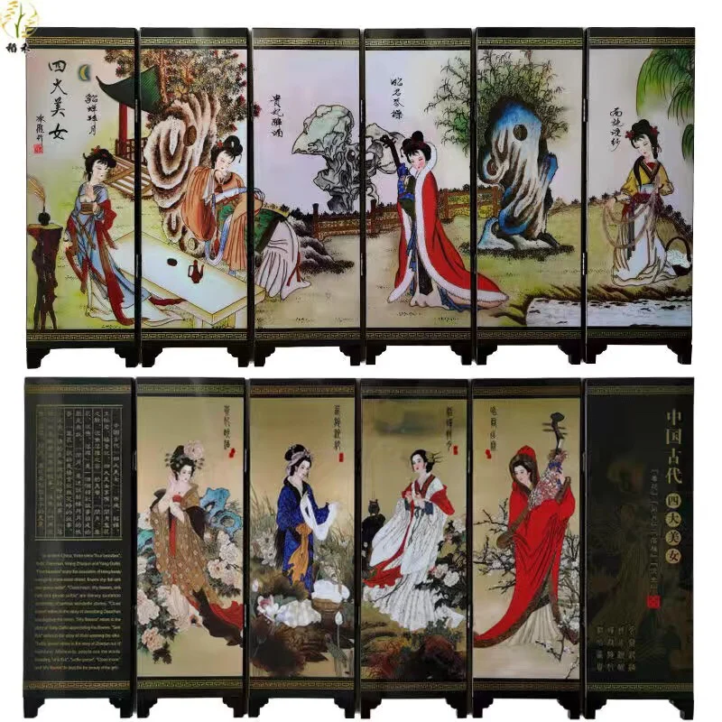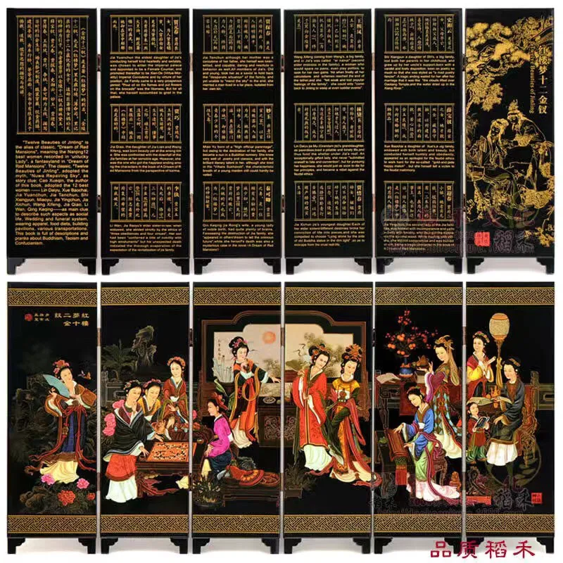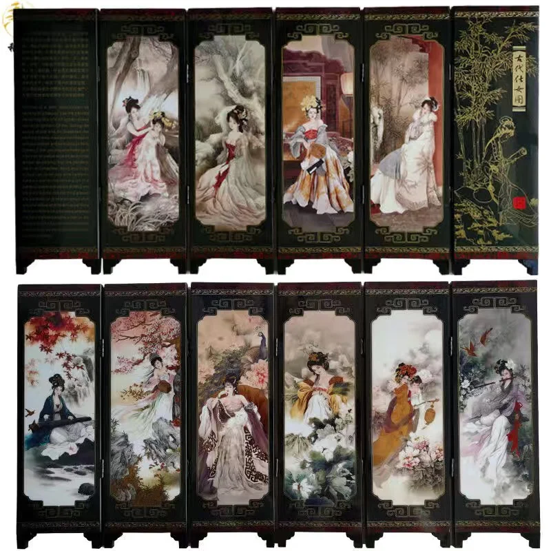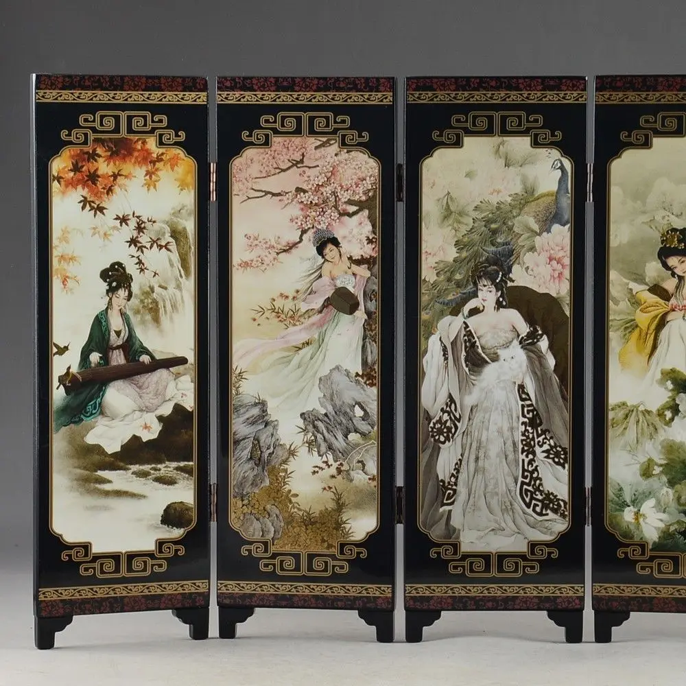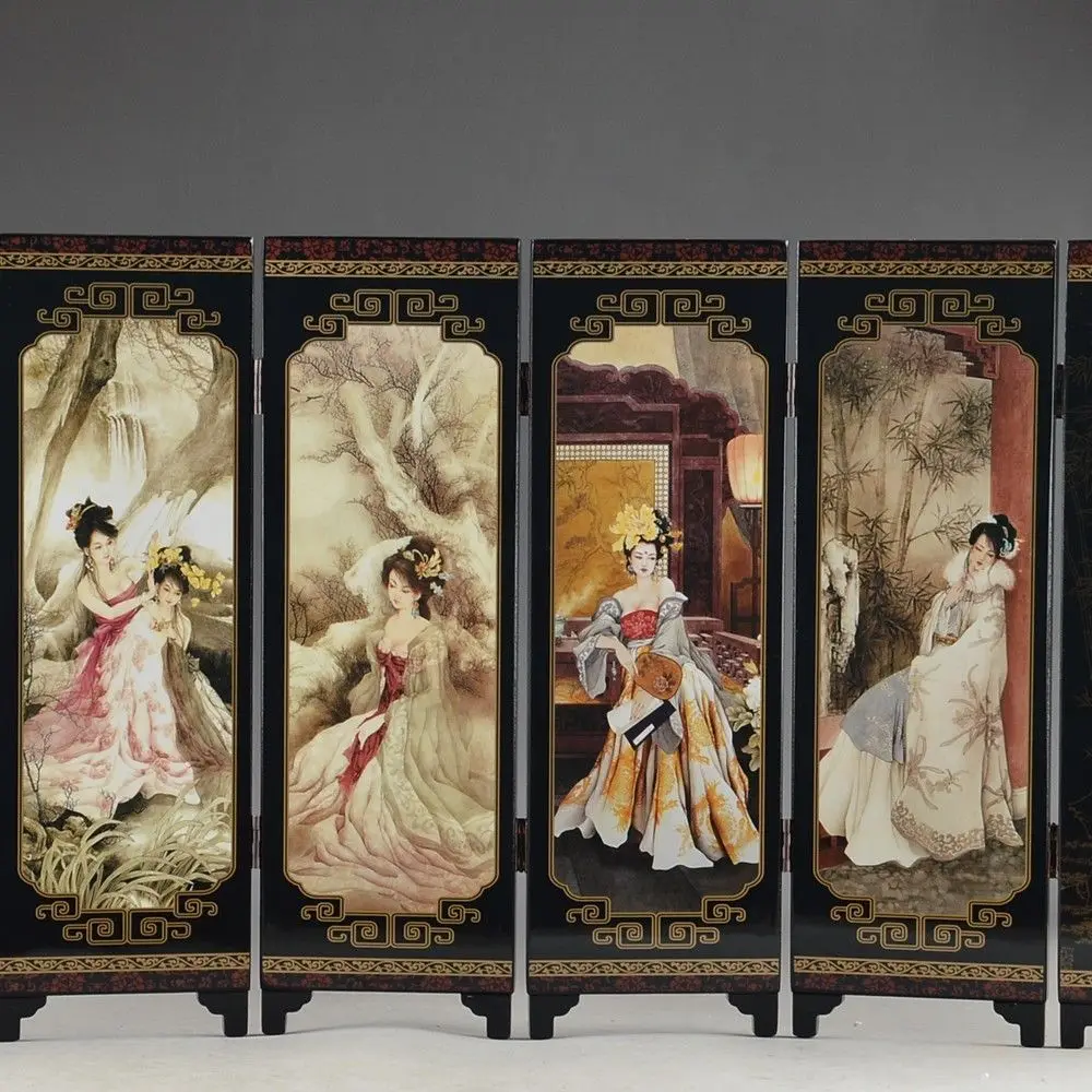 Китай, коллекция лакированные изделия года, старая рука, красивая роспись, красивое, складное украшение для экрана