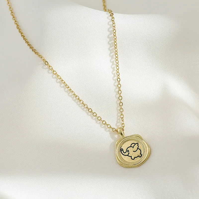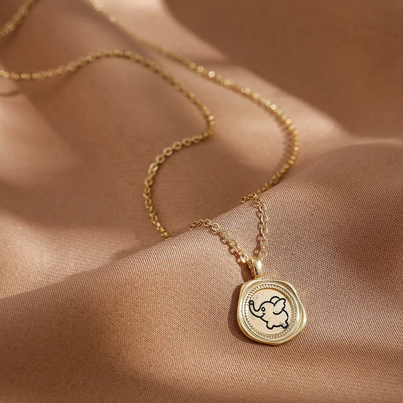 Женское Ожерелье с маленькой подвеской из мультфильма монета со слоном цепочка до ключиц очаровательное винтажное милое индивидуальное ювелирное изделие для студенток и девушек