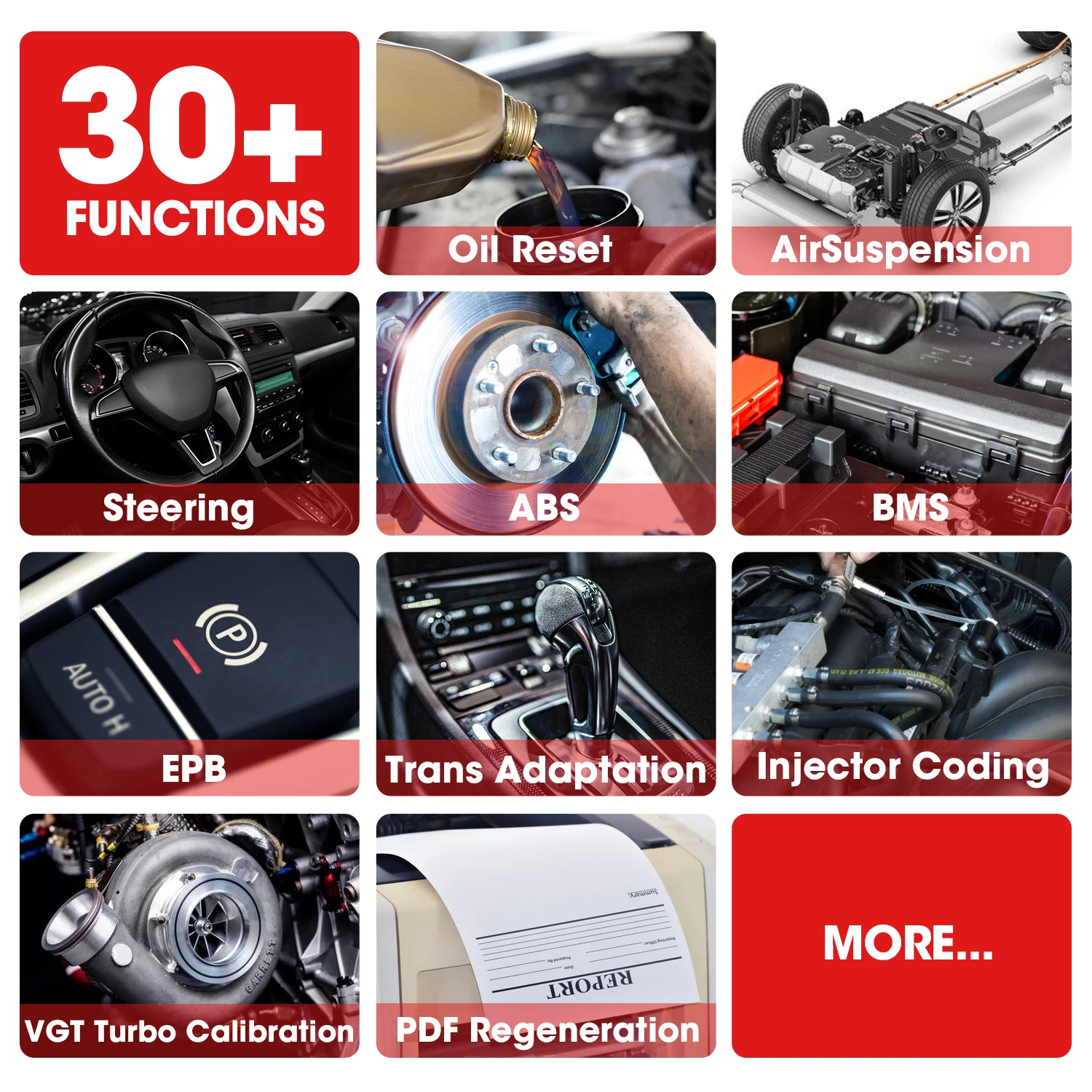 Проникая в все доступные ЭБУ, включая, помимо прочего, PCM, ECM, EPS, PDM, TPM, BCM, ABS, SCCM и т. д., MK906BT извлекает информацию и выполняет диагностику на уровне оригинального оборудования во всех доступных автомобильных системах, таких как чтение и очистка кодов, просмотр потока данных и информации об автомобиле, замена ECU, Калибровка нулевой точки (Toyota), проверка сигнала (Toyota), инициализация (ECU) и функция управления (VAG). Это не только позволяет быстро решать проблемы, но и позволяет настроить конфигурацию.