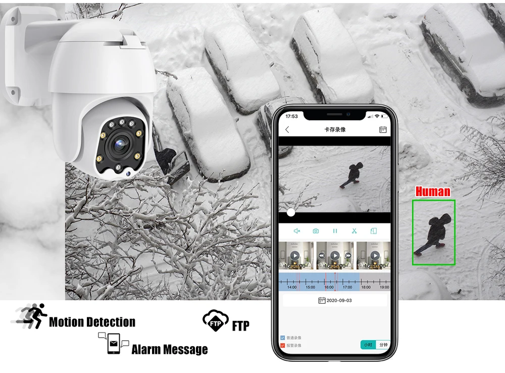 Обнаружение движения и оповещение по электронной почте и сигнал тревогиКогда кто-то врезается в область съемки, камера издает сигнал тревоги, а сообщения тревоги будут подталкиваться к вашему телефону.4 шт. IR светодиодный и 4 шт. теплый светодиодный