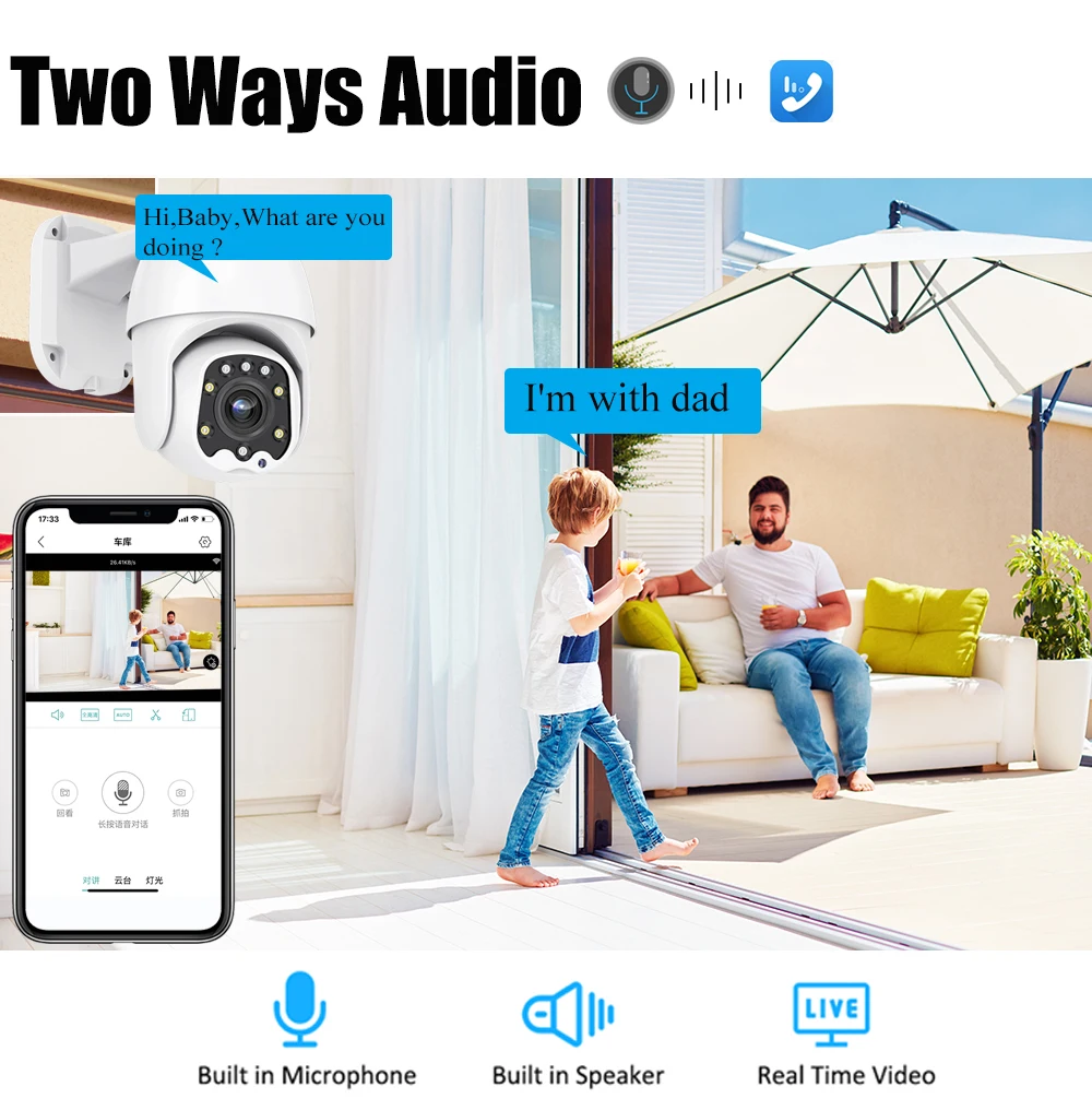 Двусторонняя аудиосвязь в режиме реального времениКамера имеет встроенный микрофон и динамик.Никогда не пропустите ни минуты с вашей семьей.