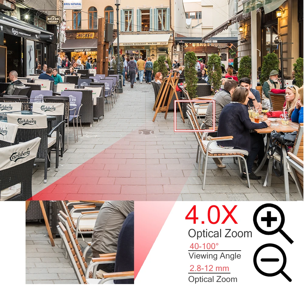 Реальный оптический зум 4X 2,8-12 мм
