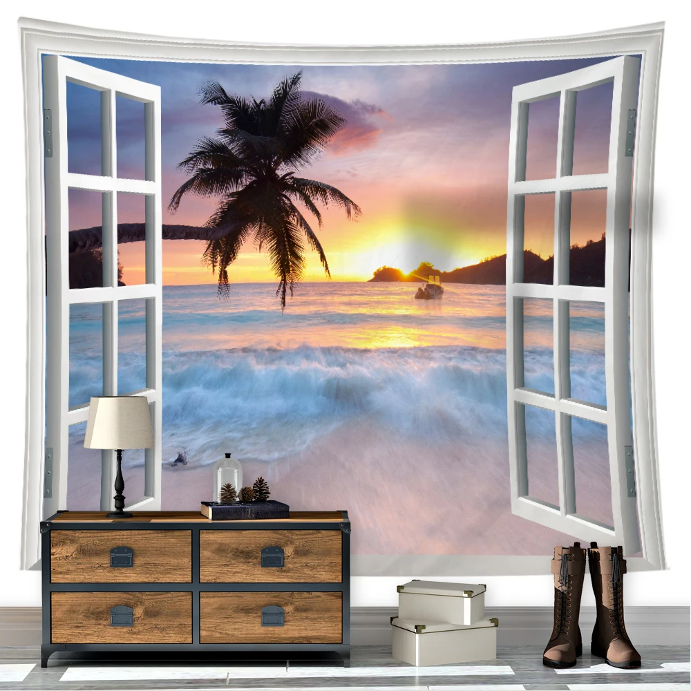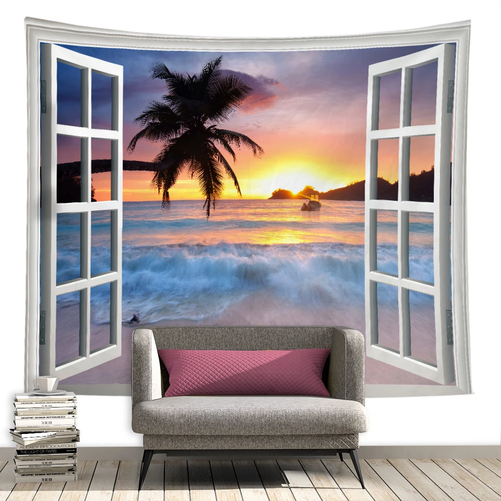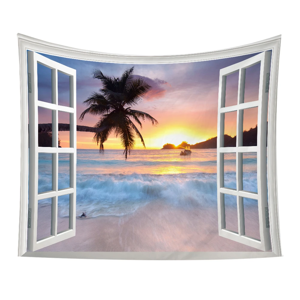 SepYue декор для окон, настенная подвеска, искусственная ладонь, ландшафт, печать, большой океан, волнистый Декор