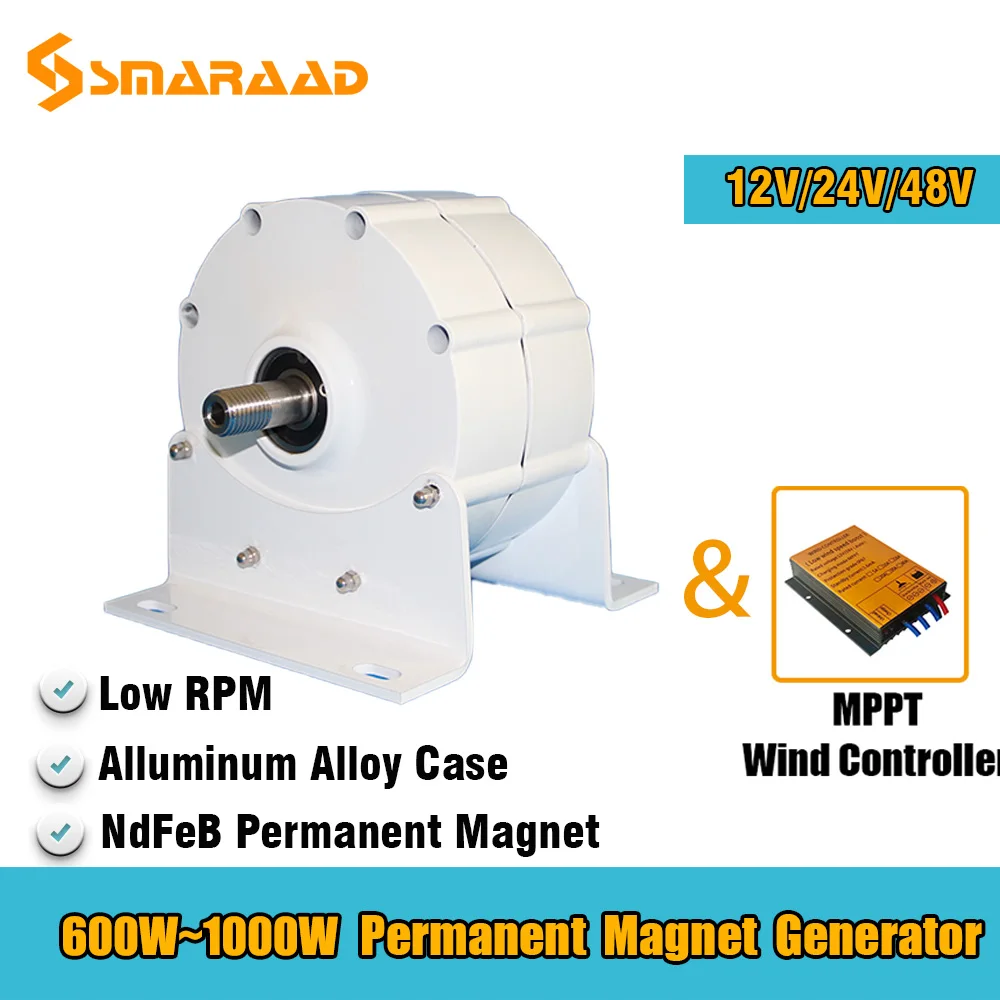Ветрогенератор 600 Вт, 800 Вт, 1000 Вт, 12 В, 24 В, 48 В, 3-фазный бесредукторный генератор переменного тока с постоянными магнитами, используется для водных турбин, дизельных двигателей