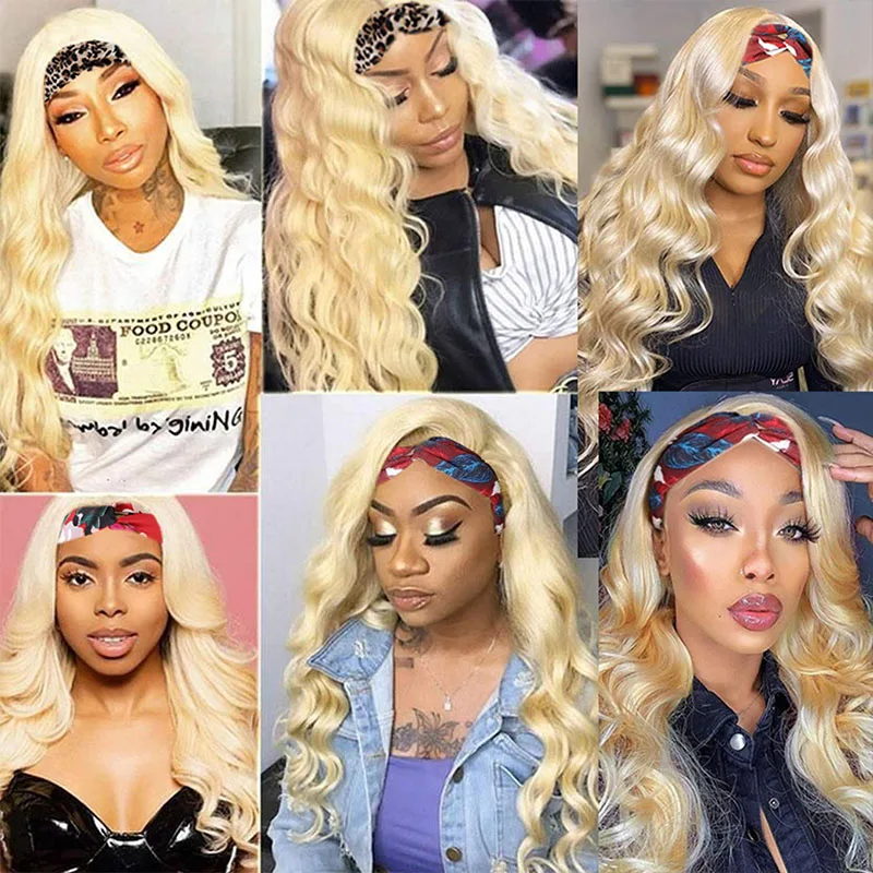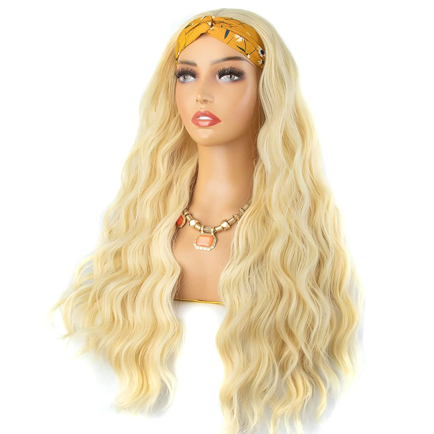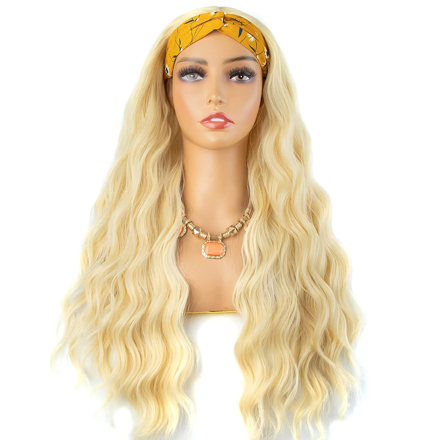 Kryssma длинные волнистые блонд парик с головной повязкой кудрявые синтетические парики для женщин термостойкие волокна волос парик с 2 бесплатно повязки