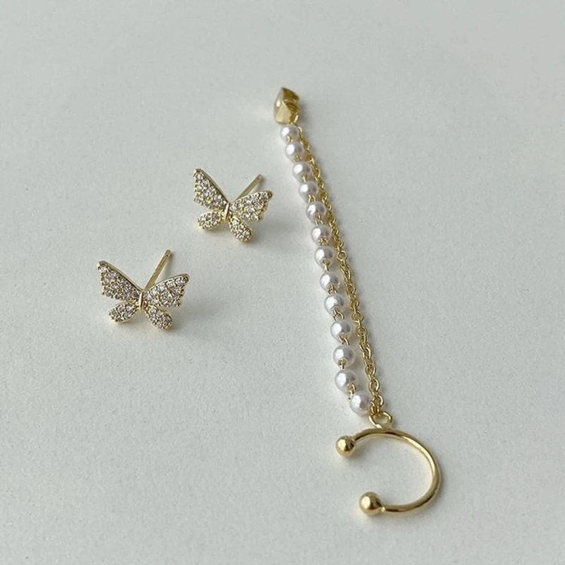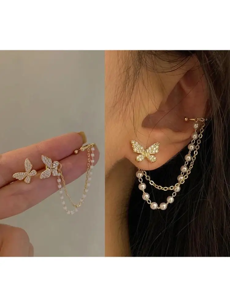 Бабочки кистона чки манжетах цепь гусеничный климер серьги для женщин девушек серьги-гвоздики дамские Изящные ежедневные ношения ювелирные изделия