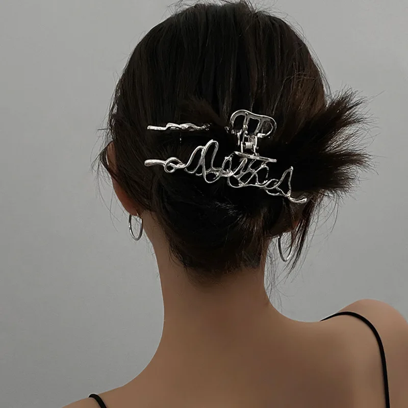 Новые большие металлические заколки для волос неправильной формы, женские серебряные геометрические заколки в стиле панк, полые заколки для волос, аксессуары для волос