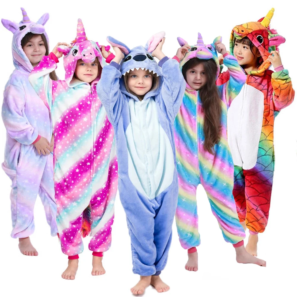 Детские зимние пижамы, Детская Пижама в виде панды, единорог, кигуруми, комбинезоны для мальчиков и девочек, одеяло, пижама, аниме, косплей, детский комбинезон