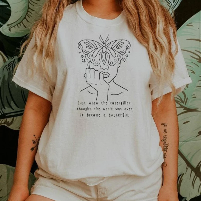 Camiseta абстрактная женская футболка в стиле бохо с вопросами о психическом здоровье футболка просто когда гусеница думала, что мир перешел
