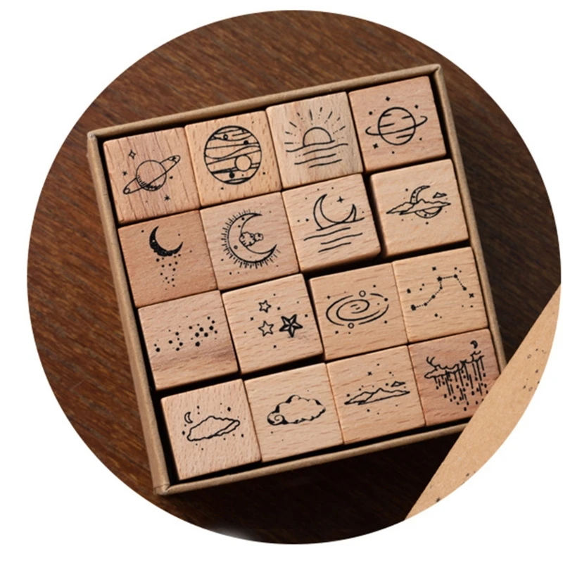 16 шт.компл. The Moon and Sixpence Series Vintage Stamp DIY Деревян...