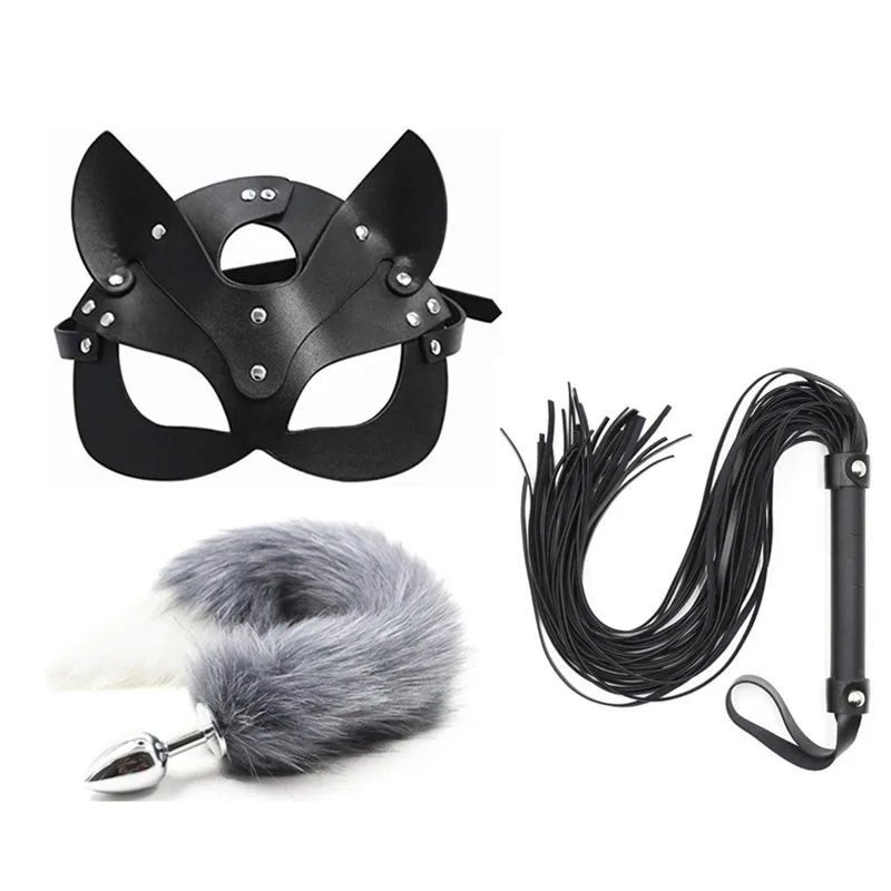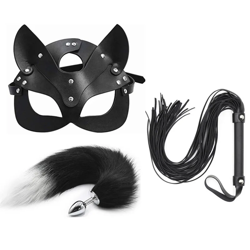 3 шт. реквизит для косплея, плетка, маска кошки, лисий хвост, Анальная пробка, Металлическая Детская секс-товары для взрослых, женские кожаные маски для лица, Эротические