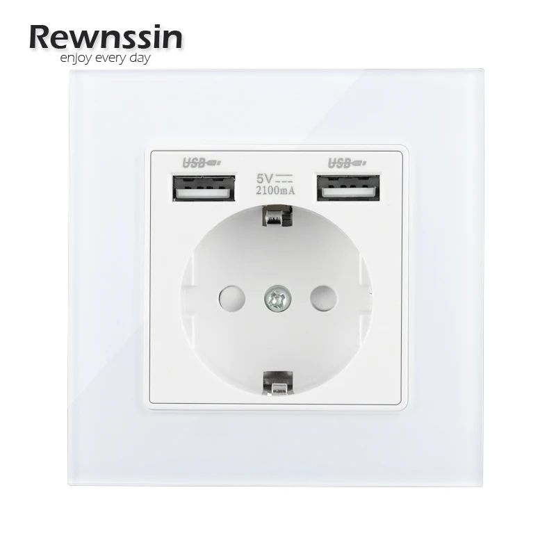 Белая стеклянная панель с индикатором питания, а, с двумя USB-портами