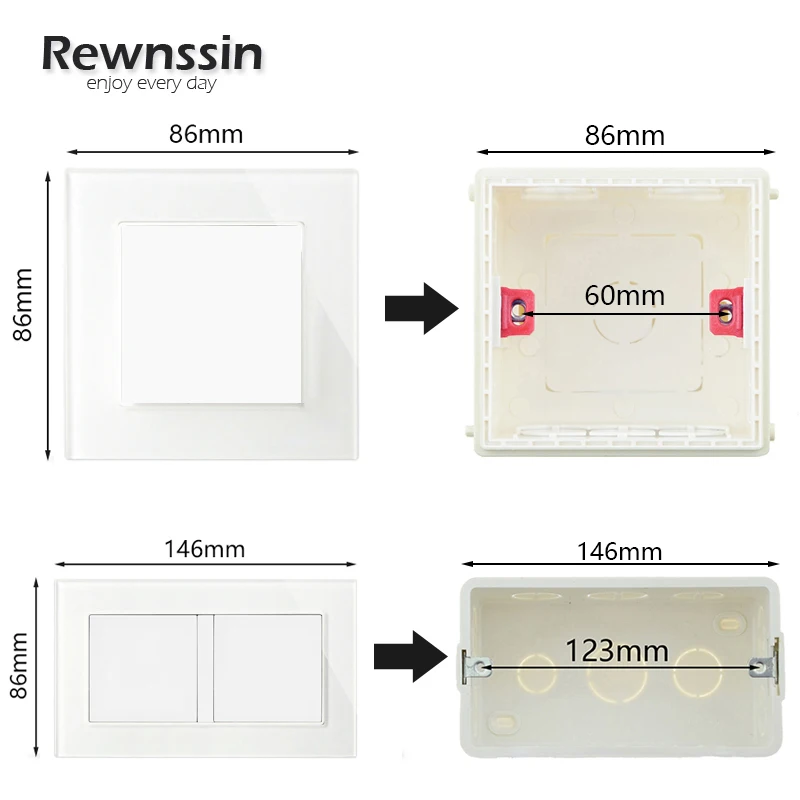 Этот продукт не может быть установлен в круговой установочной коробке, пожалуйста, тщательно Выберите нужный продукт перед покупкой. Вы также можете купить соответствующий 86 Тип квадратной монтажной коробки в нашем магазине.
