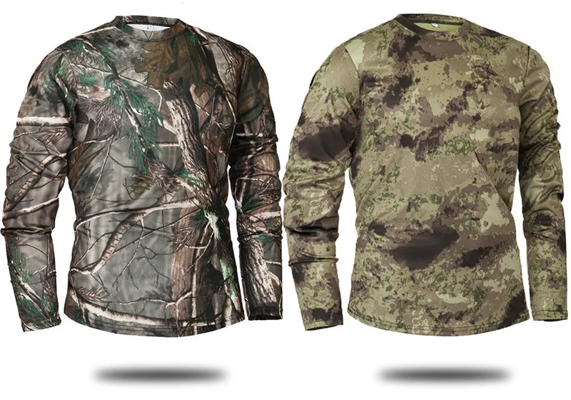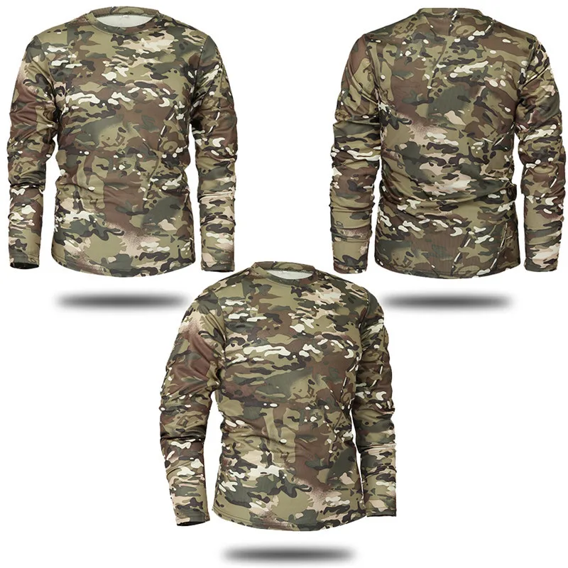 Быстросохнущая камуфляжная футболка с длинным рукавом, уличная дышащая Военная тактическая футболка, Мужская одежда для охоты, Походов, Кемпинга