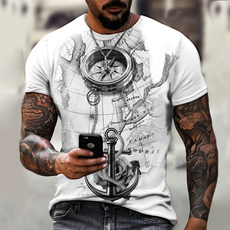 Новинка 2022, мужская летняя футболка с 3D-принтом компаса, футболк...