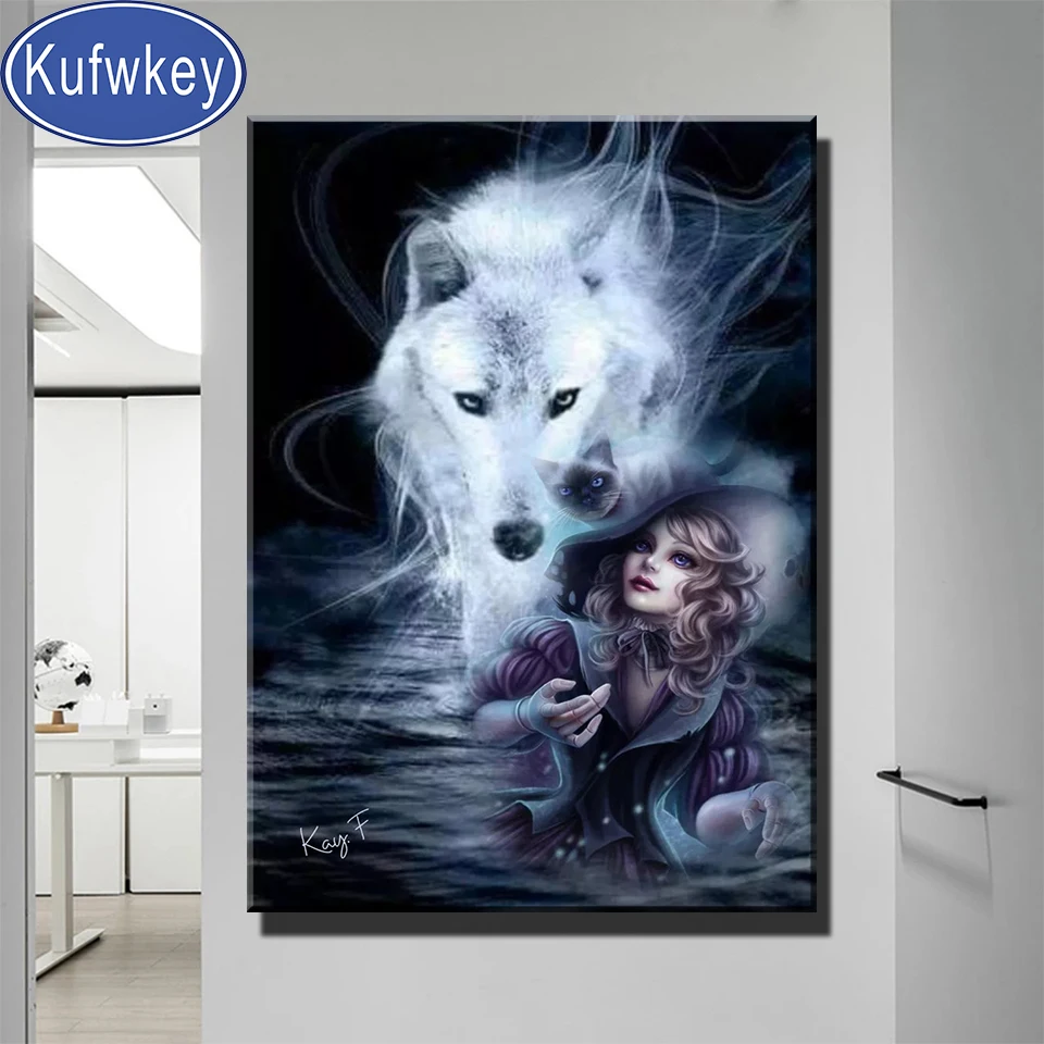 5d Diy алмазная живопись фантазия "Волк кошка девушка" полный квадратный круглый дрель вышивка крестиком Стразы мозаика домашний декор искусство