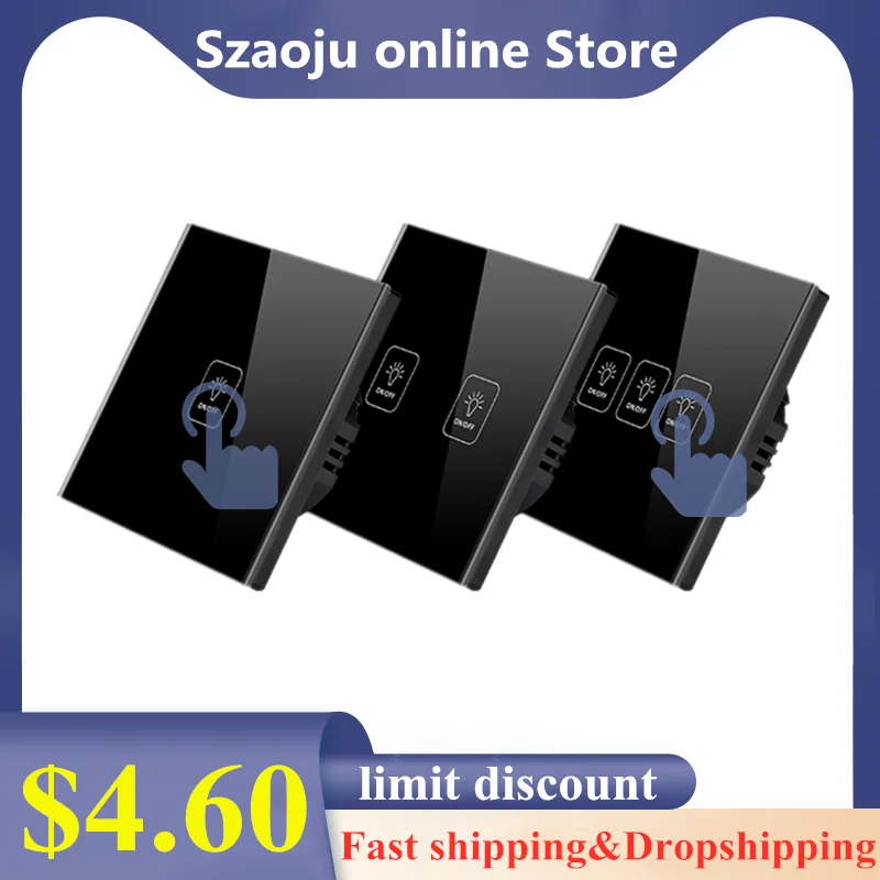Сенсорный выключатель европейского стандарта, Светодиодная панель, настенные выключатели света, закаленное черное и белое Хрустальное стекло, 124-кнопочный 1-ходовой переключатель, переключатель AC220