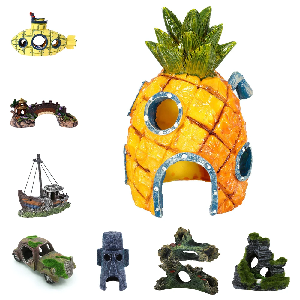 Аквариум ананас водные животные украшения дома подводная лодка моделирование пейзаж затонувший Танк Мост Аксессуары для декора аквариума